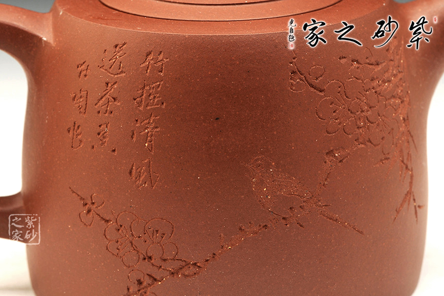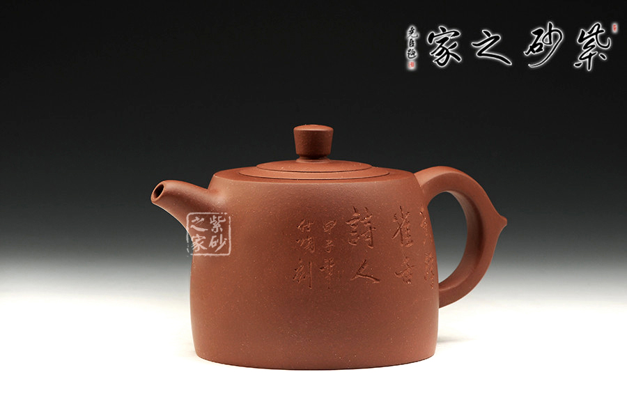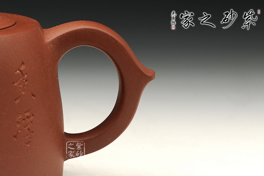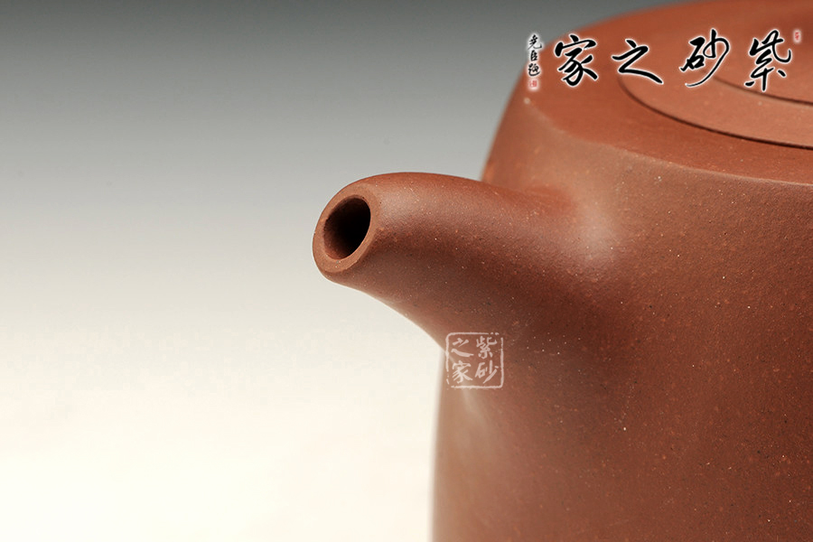 整體造型簡潔,身若井欄,嵌蓋平緩合體,柱鈕與壺身統(tǒng)一,一彎嘴曲而微妙。把圈大,里圓潤,底圓而大,為經典之作!