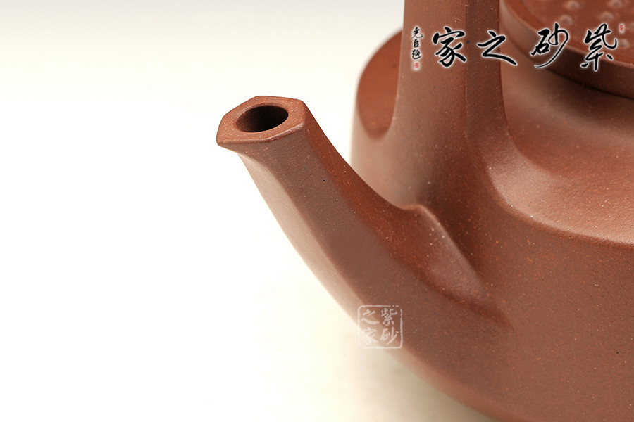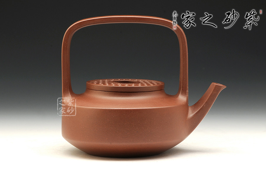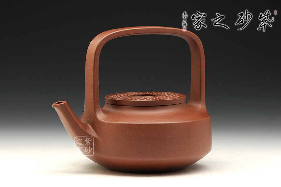 此壺型乃顧景舟大師原創(chuàng)之作,因其壺蓋似古代玉璧之造型得名。此壺構思巧妙,制作精良,壺蓋嚴絲合縫、整齊劃一;壺鈕造型新穎、頗具新意;壺嘴舒出自然、比例適度;提梁虛實有度、挺括有力;壺身端莊大氣、圓中見方。整個造型簡潔端莊,比例諧和、柔中寓剛,神、氣、韻兼?zhèn)?,大師之作在童健老師手里也有別樣風韻。
