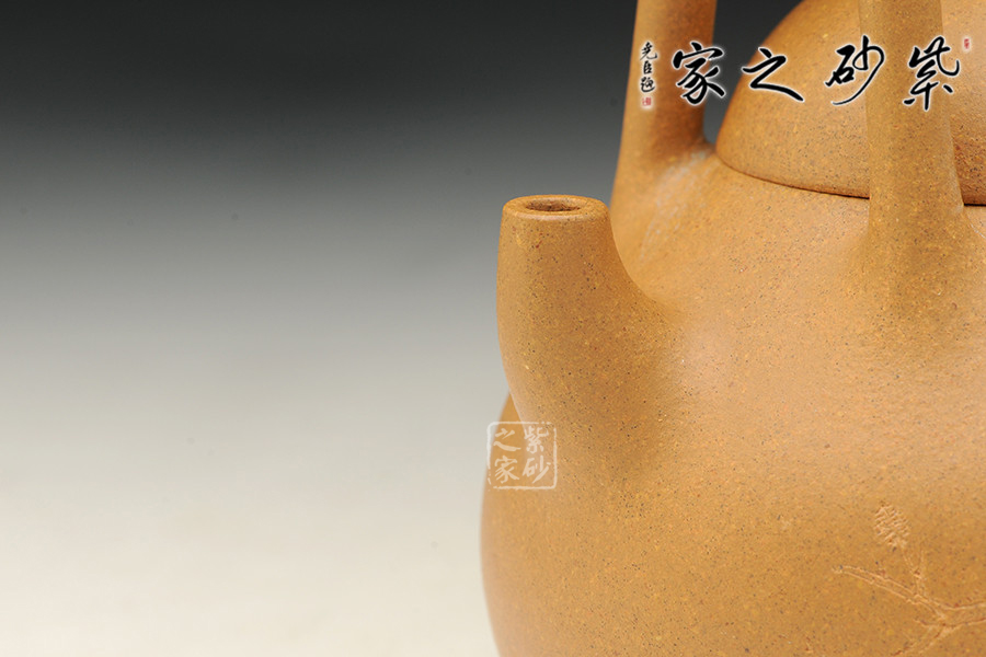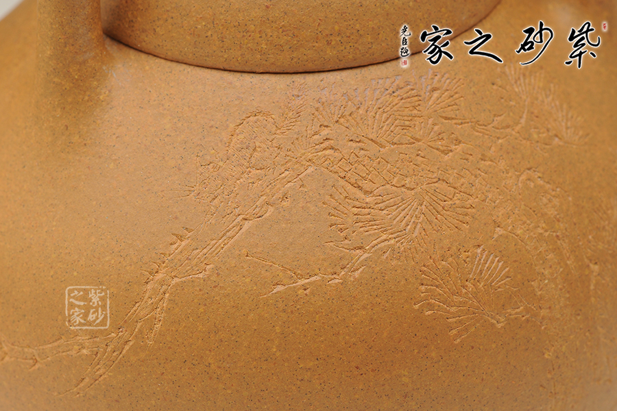 泥性:感甜嫩綿密,質(zhì)堅(jiān)而溫潤,呈近田黃色調(diào),為江蘇宜興趙莊山系朱泥礦~黃石黃之共生礦,經(jīng)挑揀練製而成,因含鐵量只達(dá)6%左右,致陶之后呈“金田黃色”。