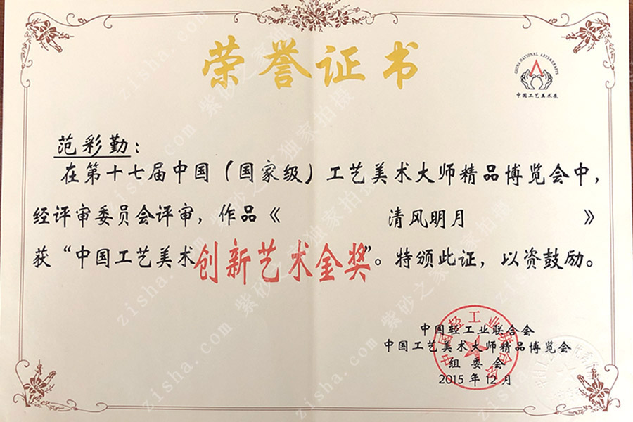 ▼ 2015年第十七屆中國(guó)工藝美術(shù)大師精品博覽會(huì)“創(chuàng)新藝術(shù)金獎(jiǎng)”