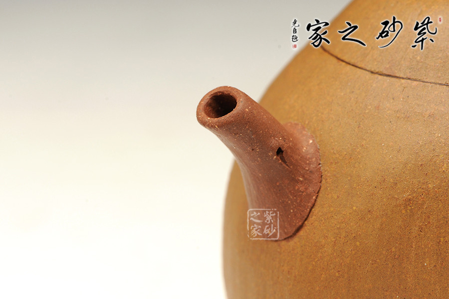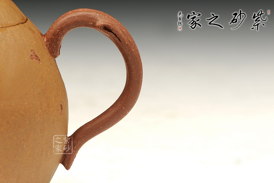 泥性:感甜嫩綿密,質堅而溫潤,呈近田黃色調,為江蘇宜興趙莊山系朱泥礦~黃石黃之共生礦,經(jīng)挑揀練製而成,因含鐵量只達6%左右,致陶之后呈“金田黃色”。