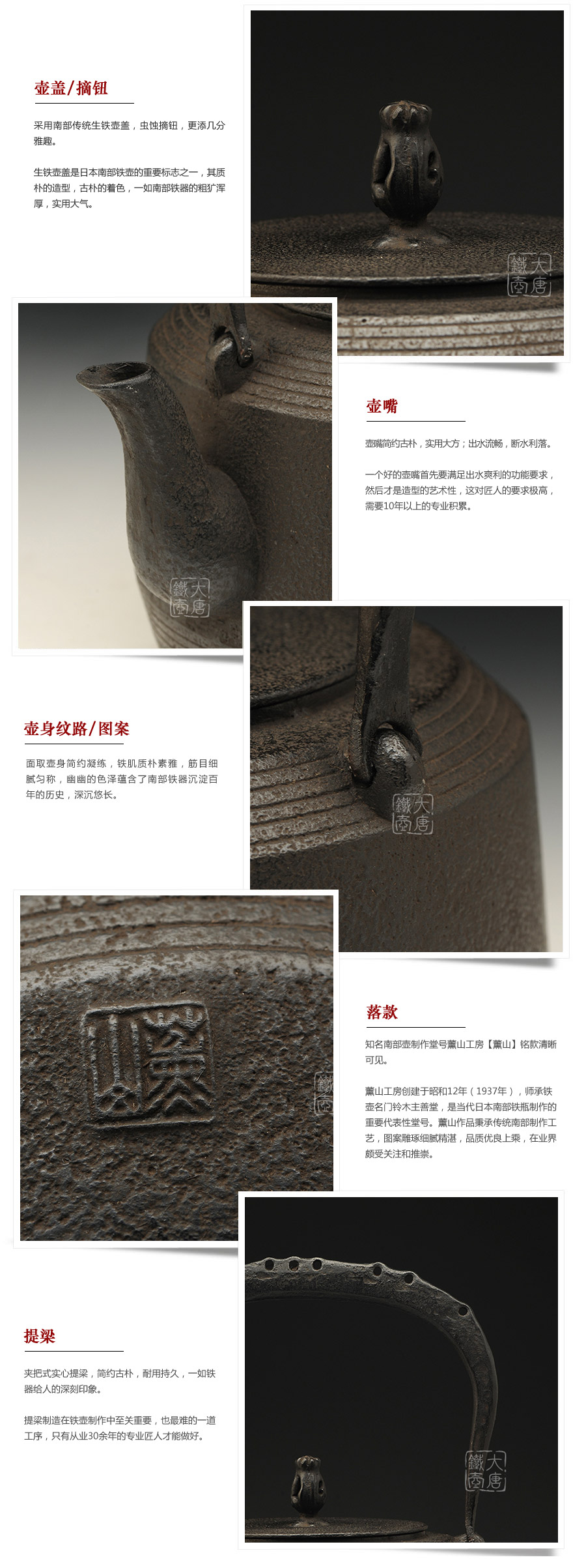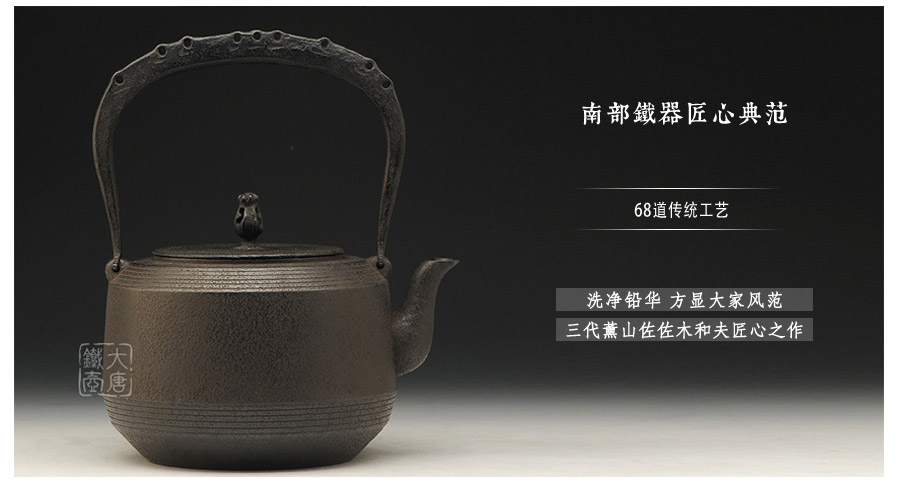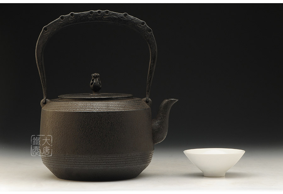 南部鐵器知名堂號薰山工房作品,傳統(tǒng)手工工藝,面取壺身簡約凝練,鐵肌質樸素雅,筋目細膩勻稱,幽幽的色澤蘊含了南部鐵器沉淀百年的歷史,深沉悠長。