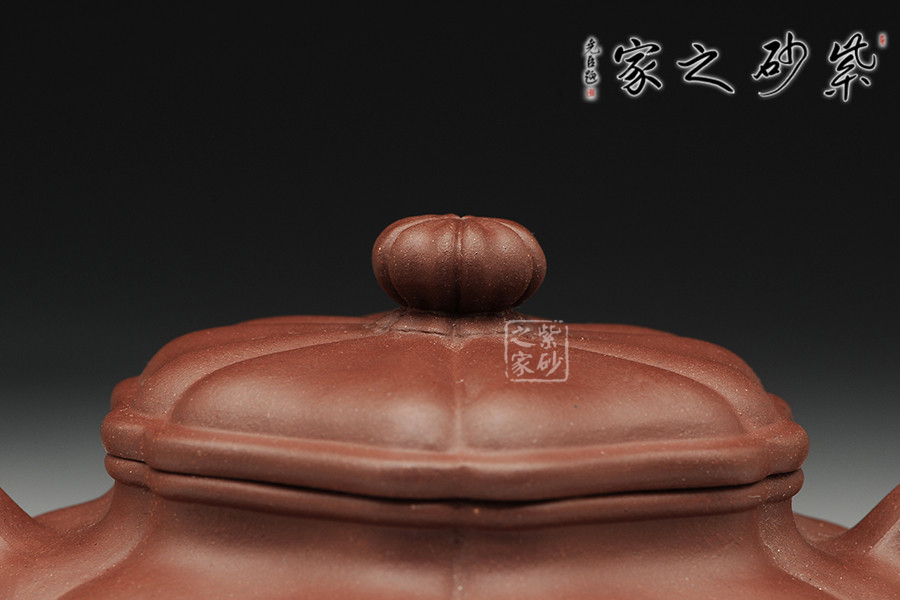 該作品老師全手工制作而成,對(duì)于在筋紋器方面有較高造詣的何寬老師而言,其筋紋作品總能將精氣神韻的氣度較現(xiàn)上佳。壺作葵仿古式,以六瓣葵花式構(gòu)成壺體,蓋鈕與壺身皆呈筋紋狀,筋紋凹凸有致,口蓋吻合,富于動(dòng)感。嘴與把皆作棱柱六方式,透出靈動(dòng)之氣。器身筋紋線條等分均勻,棱角分明,端莊雅致,飄逸俊美。