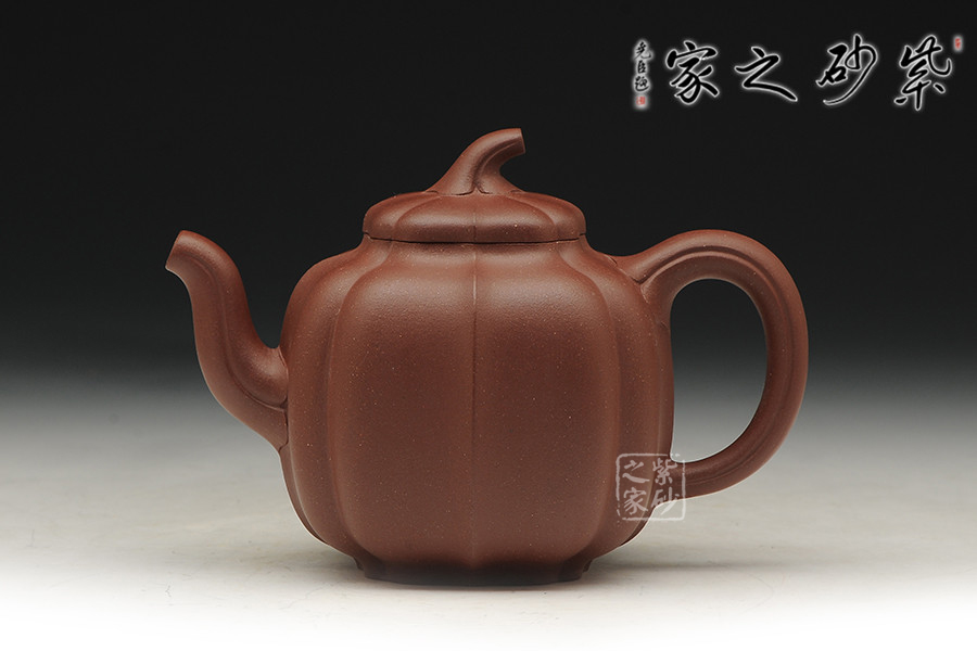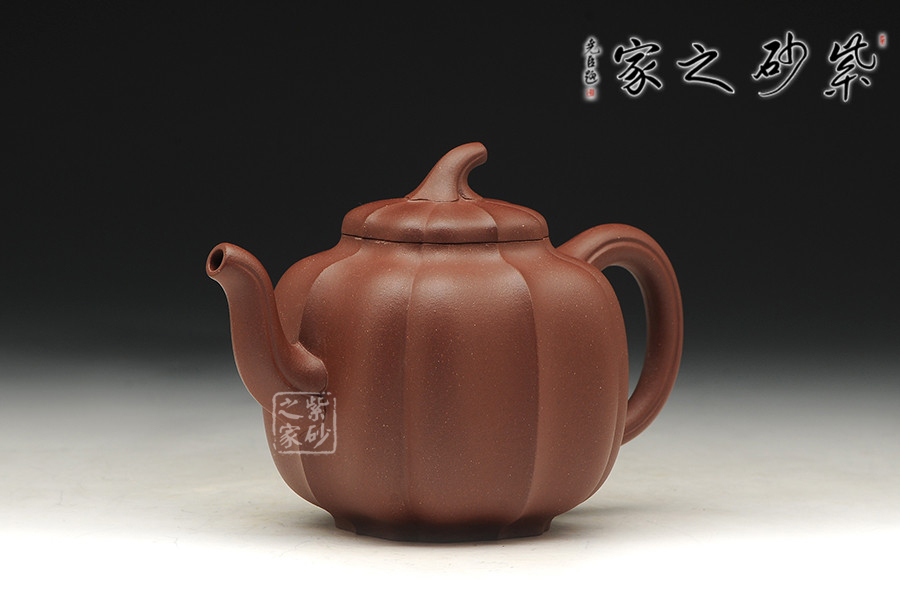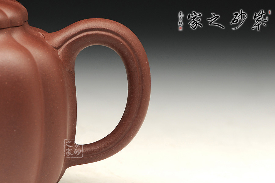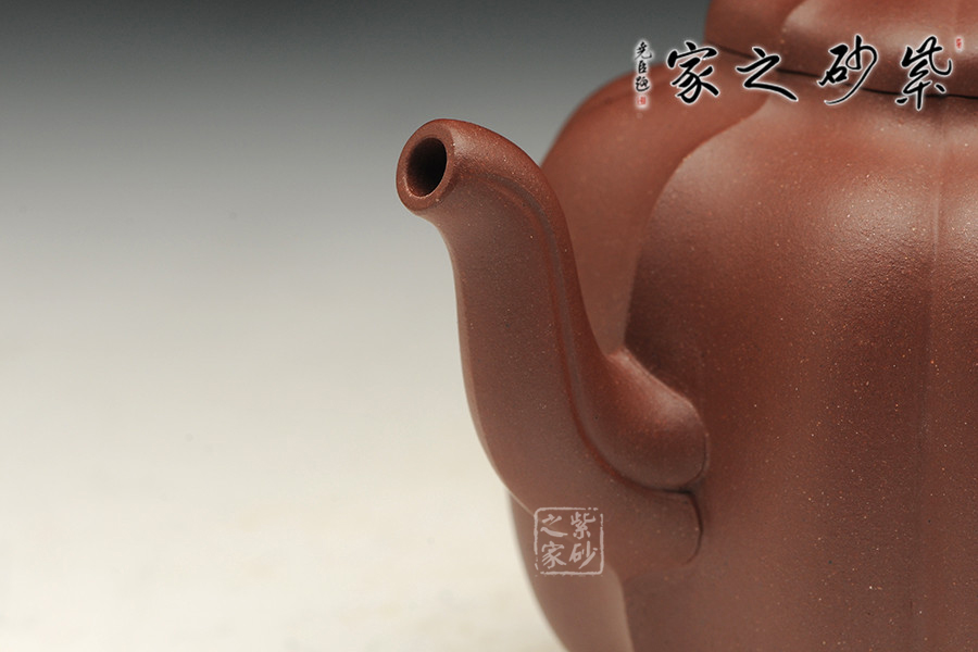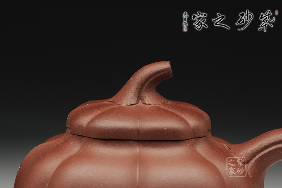 該造型為菱花壺式,整體溫潤飽滿,做工精致,既有紫砂的淳厚古樸,又有瓜果的靈巧精致。壺身身筒較高,采用菱花筋紋裝飾,密布均勻,法度嚴(yán)謹(jǐn),壺藝氣韻;截蓋設(shè)計(jì)與壺身融為一體,大氣端莊不失優(yōu)美。整器在輪廓的收放中,努力使線條簡約收束,各部件和諧有度,造就實(shí)用簡單的精美佳器。