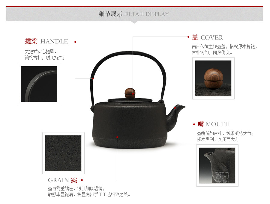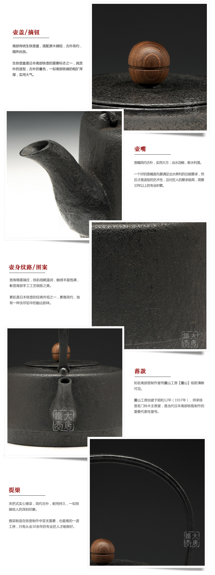 薰山工房創(chuàng)新典范,南部傳統(tǒng)手工工藝,壺身穩(wěn)重端莊,鐵肌細(xì)膩溫潤(rùn),觸感豐盈飽滿,彰顯南部手工工藝細(xì)致之美。