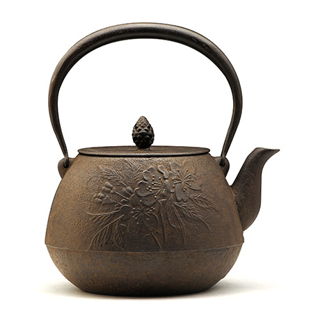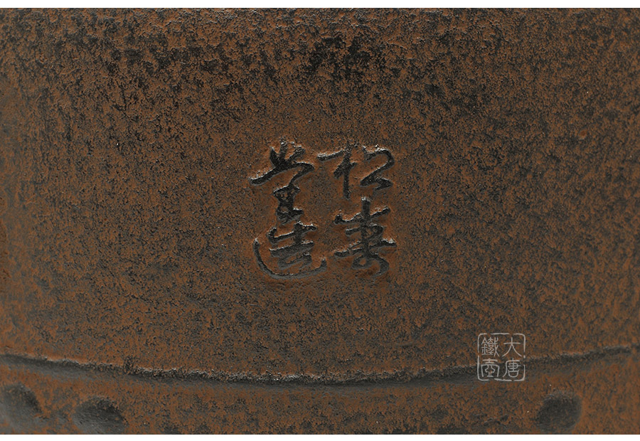 平安松壽堂(即松壽堂、西村松壽堂)是京都鐵瓶(也叫關西鐵壺)的典型代表,明治18年(1885年)由初代西村勝在京都寺町創(chuàng)建。平安松壽堂制作的鐵壺采用銅質(zhì)壺蓋,壺底內(nèi)側底部有板狀突起的“鳴金”,壺身或者提梁伴有金銀貴金屬鑲嵌的各式圖案或花紋,與京都寺町附近的龍文堂、雨宮金壽堂、云色堂等共同形成了獨特的京都鑲嵌特色。
