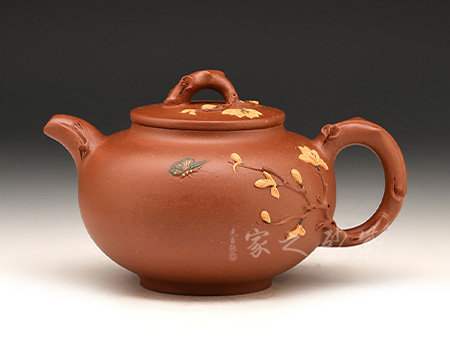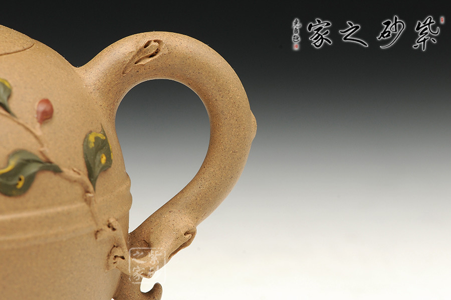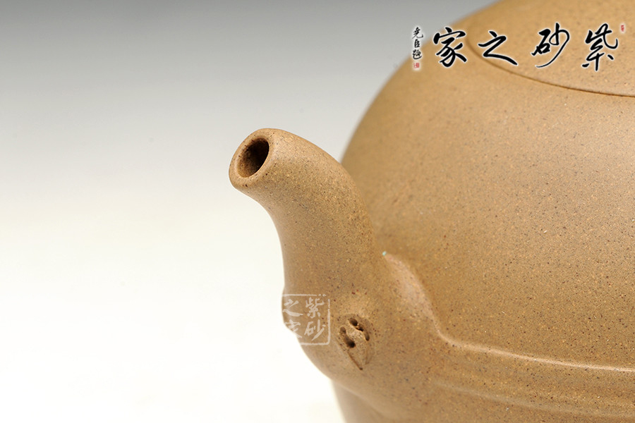 泥性:感甜嫩綿密,質(zhì)堅而溫潤,呈近田黃色調(diào),為江蘇宜興趙莊山系朱泥礦~黃石黃之共生礦,經(jīng)挑揀練製而成,因含鐵量只達(dá)6%左右,致陶之后呈“金田黃色”。