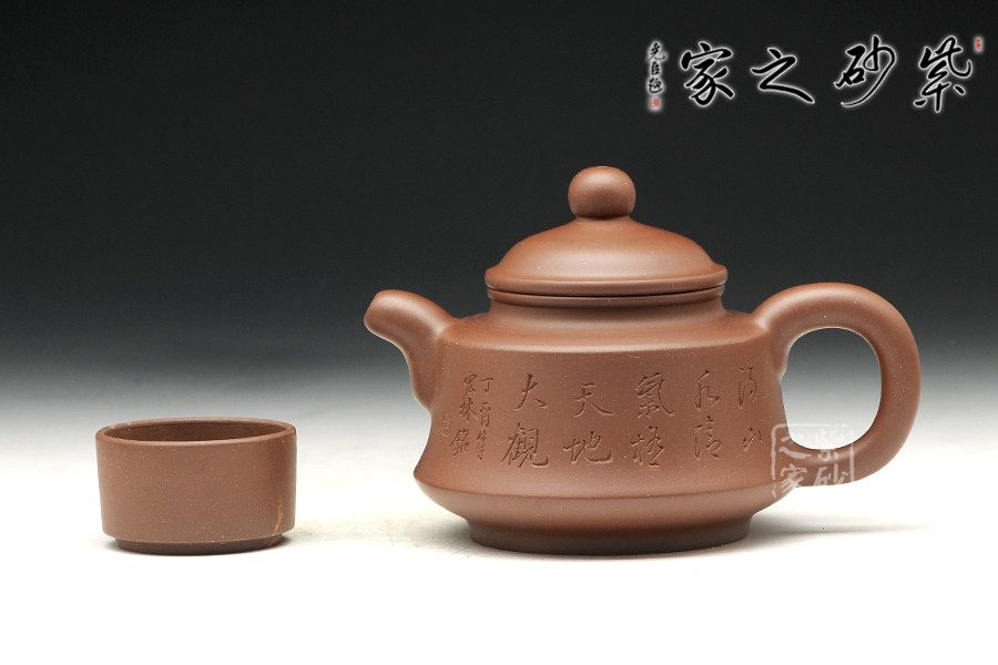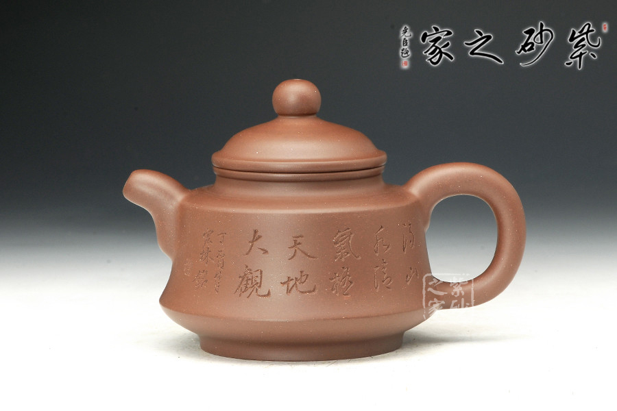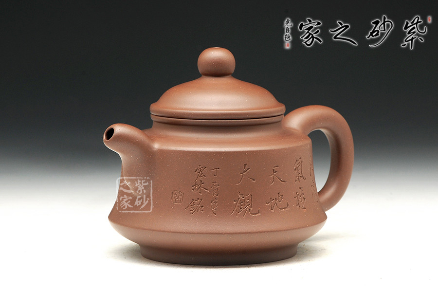 光貨離不開裝飾。俗話說“壺隨字貴,字隨壺傳”:光壺不刻字,就是一把光壺;壺上面刻了大師、名人的字,一把壺的含金量就高了,收藏價值就更高,升值潛力就更大。王福君與中國工藝美術(shù)大師譚泉海合作最多,其次是徐安碧、鮑志強毛國強(均為中國工藝美術(shù)大師、中國陶瓷藝術(shù)大師)
