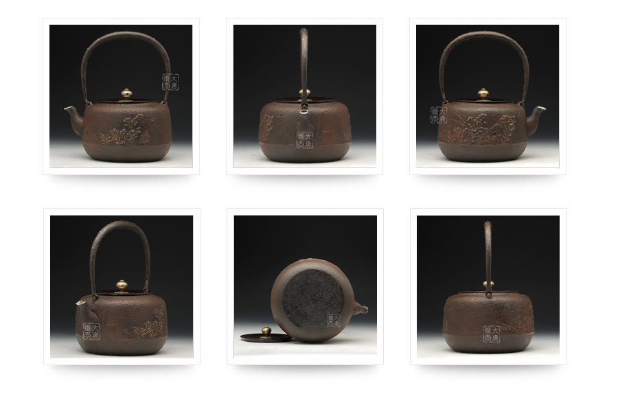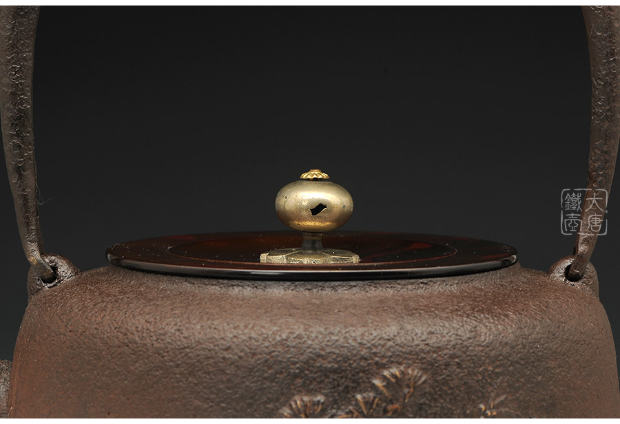荒井工房的鐵瓶除了在鑄造工藝上有嚴(yán)格的規(guī)范和體系,在鐵瓶裝飾技術(shù)上也頗有建樹。除了傳統(tǒng)的印刻技術(shù)外,荒井工房還掌握了非常出色的金銀鑲嵌技藝,尤其以大片的鏨刻銀片最為出眾,這在山形當(dāng)?shù)靥每谥歇?dú)樹一幟。