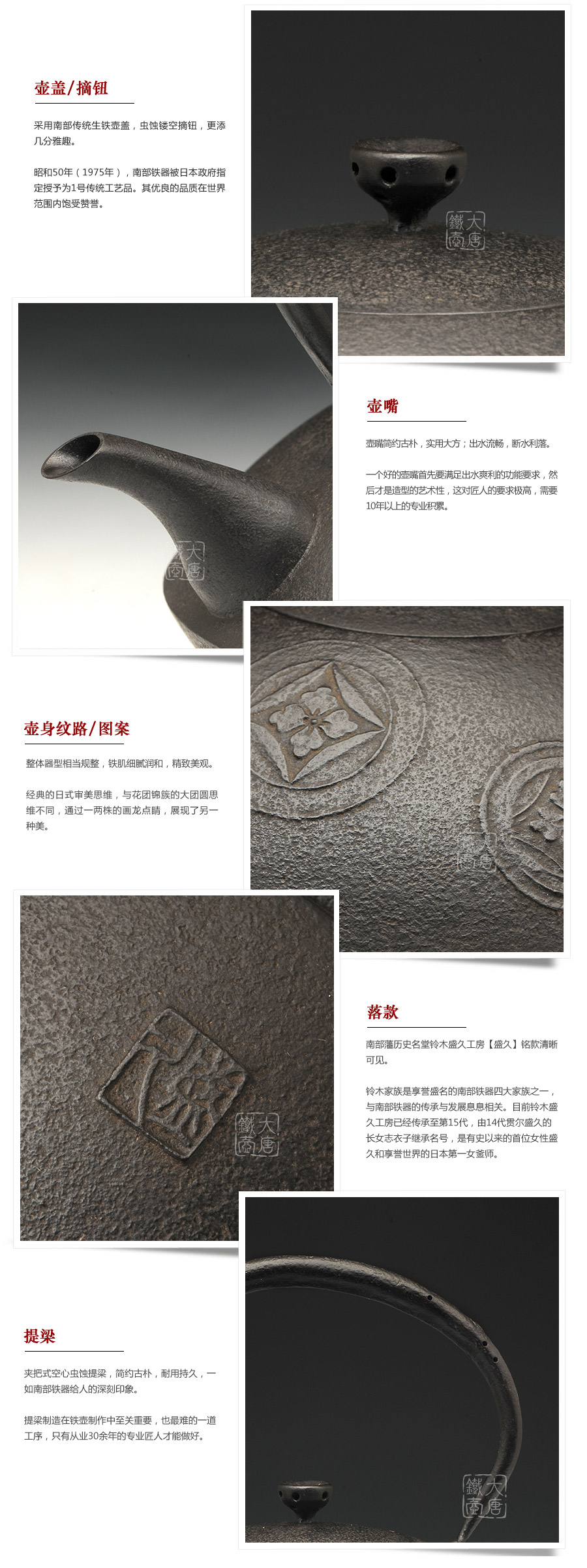南部鐵器的傳承與發(fā)展,與鈴木家族息息相關(guān)。鈴木家始祖縫殿家綱受第27代藩主南部利直召喚,成為藩主御用釜師,以梵鐘、燈籠等作品而聞名。到了第3代喜兵衛(wèi)家久時(shí)代,南部藩開(kāi)始流行茶道,于是他們轉(zhuǎn)而從事茶道具的相關(guān)制作。