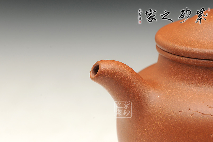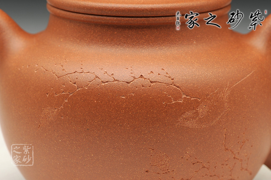 泥性:原礦因含緞泥、紅泥、紫泥等諸多共生礦,陶之后,于深沉之“橙紅色”底上,滿佈五彩斑斕的粗細、深淺之紅、黃星斑點。