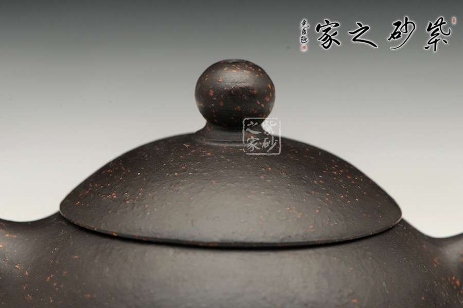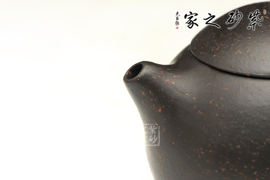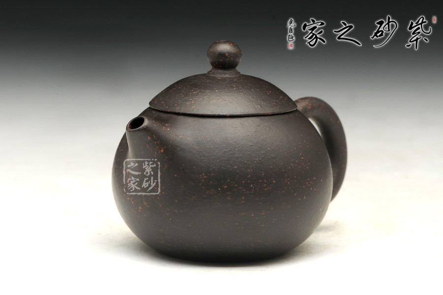 黑金砂是紫泥里的一種,原礦里含錳高,含鐵紅粉豐富,所以經(jīng)過(guò)高溫?zé)珊髩厣硗w烏黑油亮隱隱泛著紅色的顆粒有如亞金一樣,故稱(chēng)黑金砂,泥料含有朱砂,段泥砂的屬性,容易泡養(yǎng)。黑金砂紫泥中的精品