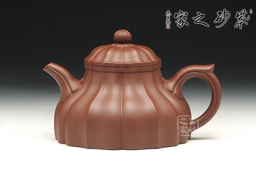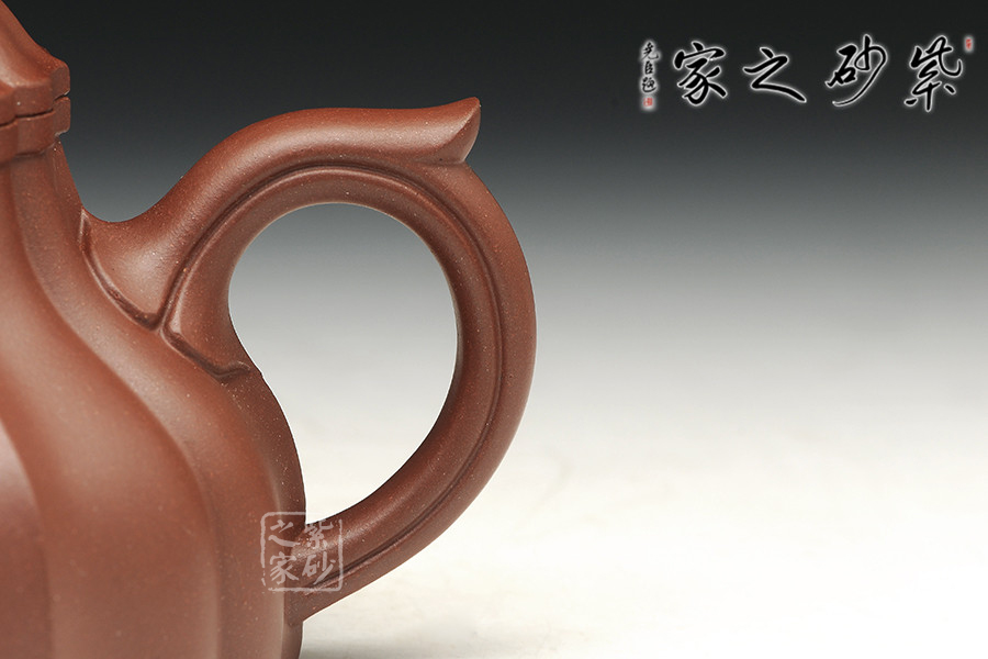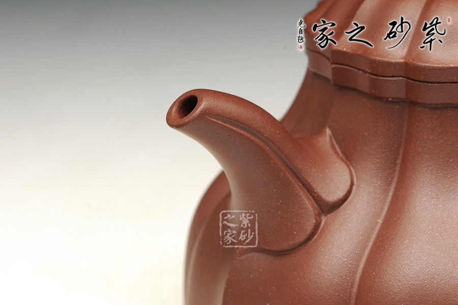 宜興技術(shù)能手何寬筋紋器工藝了得,在此領(lǐng)域有較高聲譽(yù)。半菱成型難度高,造型挺拔,制作精細(xì)規(guī)整,做工嚴(yán)謹(jǐn),每一個瓣棱之間排列勻稱,飽滿,韻味濃郁,無生硬之處。此壺造型優(yōu)雅寫意,凹凸線亦在肩上勾勒出花形輪廓。鈕,蓋,頸六囊紋自與壺身對應(yīng),氣流暢自如,顯見功力。整個壺形比例精確,紋理清晰,深淺自如,明暗分明,壺蓋與壺身上下貫通,渾然一體,壺蓋可以任意調(diào)換角度,與壺口配合嚴(yán)密,分毫不差,展現(xiàn)了點(diǎn)線面的最佳組合。