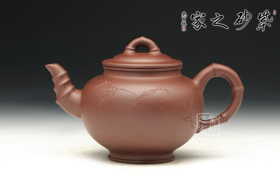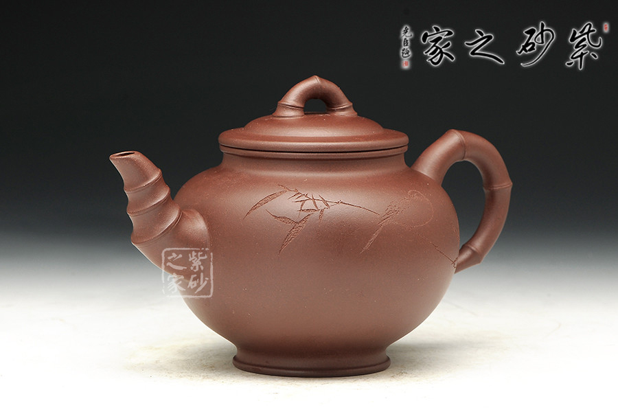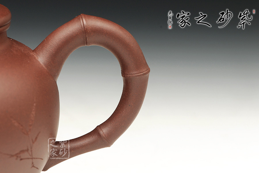 老師所用泥料均為家藏30年以上老泥料,泥質(zhì)極佳,泡養(yǎng)后溫潤(rùn)有光澤。此款素竹壺很適度地表現(xiàn)竹子的千姿百態(tài),壺鈕、壺嘴以及壺把皆為竹節(jié)造型,高節(jié)清廉,壺身飽滿(mǎn)而寬,圈足穩(wěn)重。繪制的竹葉刻畫(huà),寓意祝福美滿(mǎn)。此壺造型端莊大方,線(xiàn)條流暢自然,泥料純正天然,實(shí)用佳器,極力推薦。