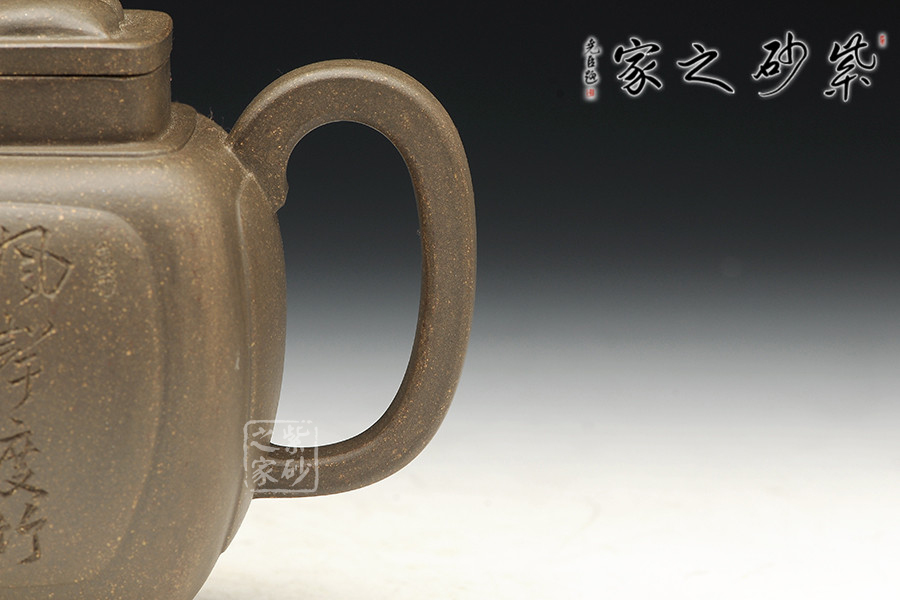青灰段泥全手工制作,泥料古樸,老味十足,器型傳統(tǒng)不失新意,在原來魁方的基礎之上加以改改良,少了股銳氣,多了份圓融。整器無論是點、線、面皆挺括,線條明朗利落,很有力度!壺體表面內斂沉穩(wěn),彎流壺嘴和方形把對應成趣,虛實結合的技巧讓人嘆服。四方型的壺身雖以方為基礎,卻不呆板凝滯,上豐下斂,過渡漸變,氣韻端莊不俗。蓋壺之上凸起設計,立體效果更佳,層層疊疊,工藝俱佳。