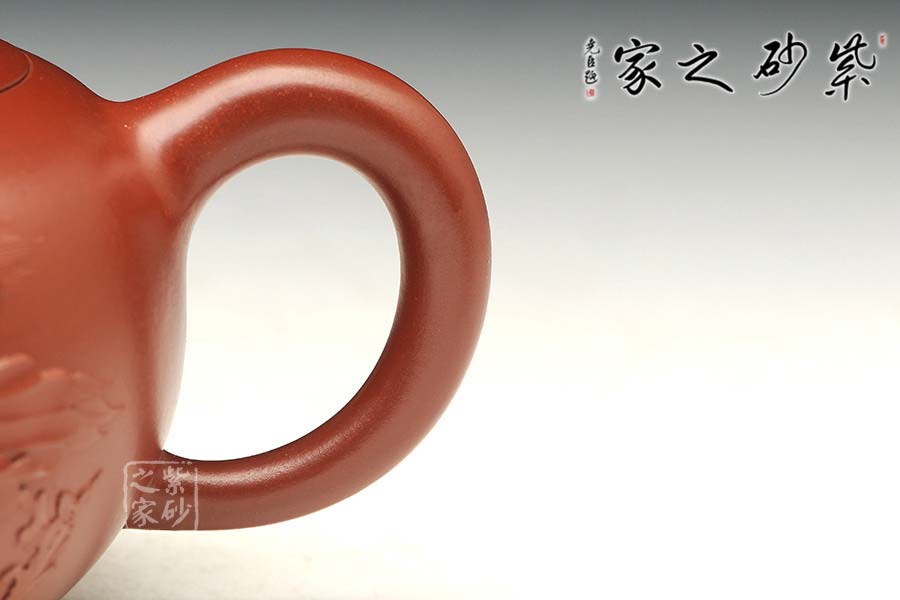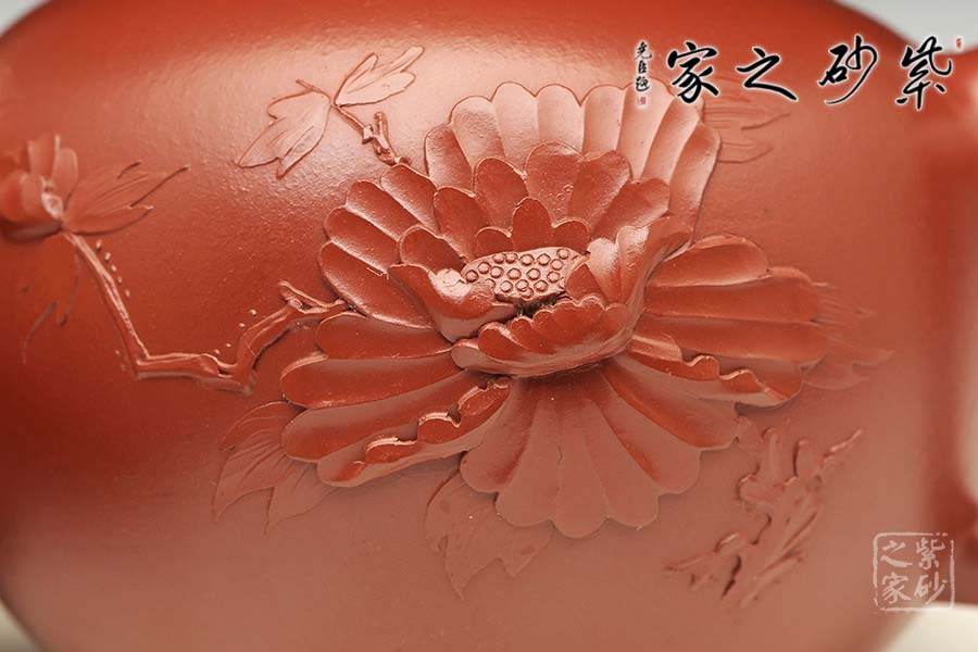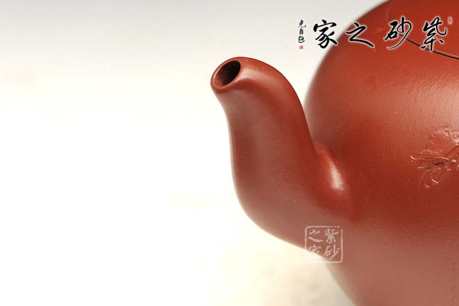 特點:質感綿密、緊實細緻,持之扎實沉重、紅潤豔麗,泥中極品,無以倫比;泥胚含少許原礦顆粒,沖淋熱水后色變極大,呈紅中帶紫,養(yǎng)壺易現“包漿”之美。