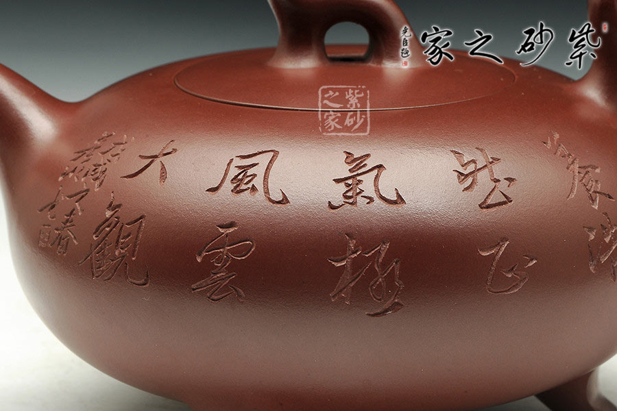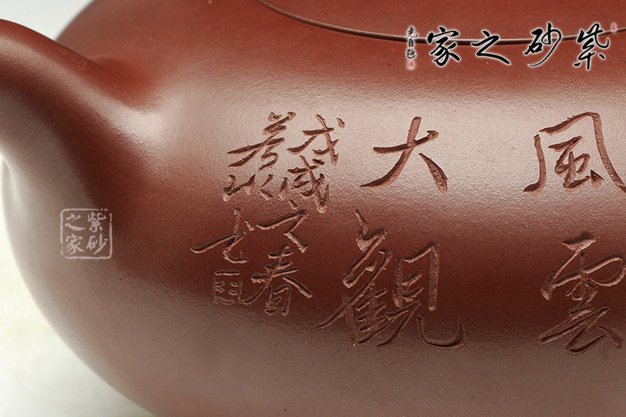 通體裝飾: 裝飾: 刻字 裝飾者:陶刻藝人 裝飾內(nèi)容: 養(yǎng)浩然正氣極風(fēng)云壯觀