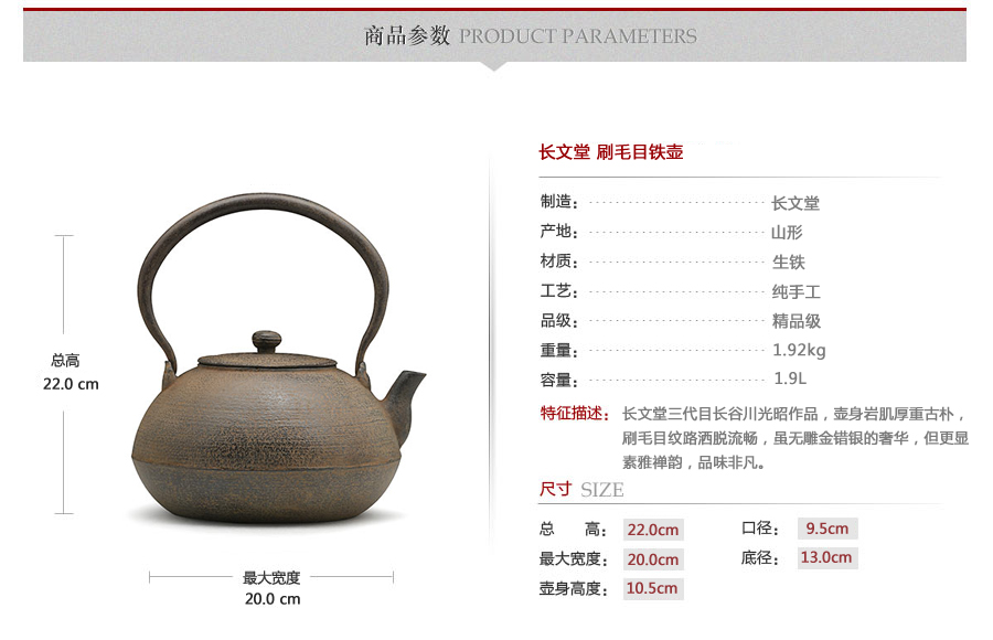 長(zhǎng)文堂 刷毛目鐵壺 [ 編號(hào):56678 ]