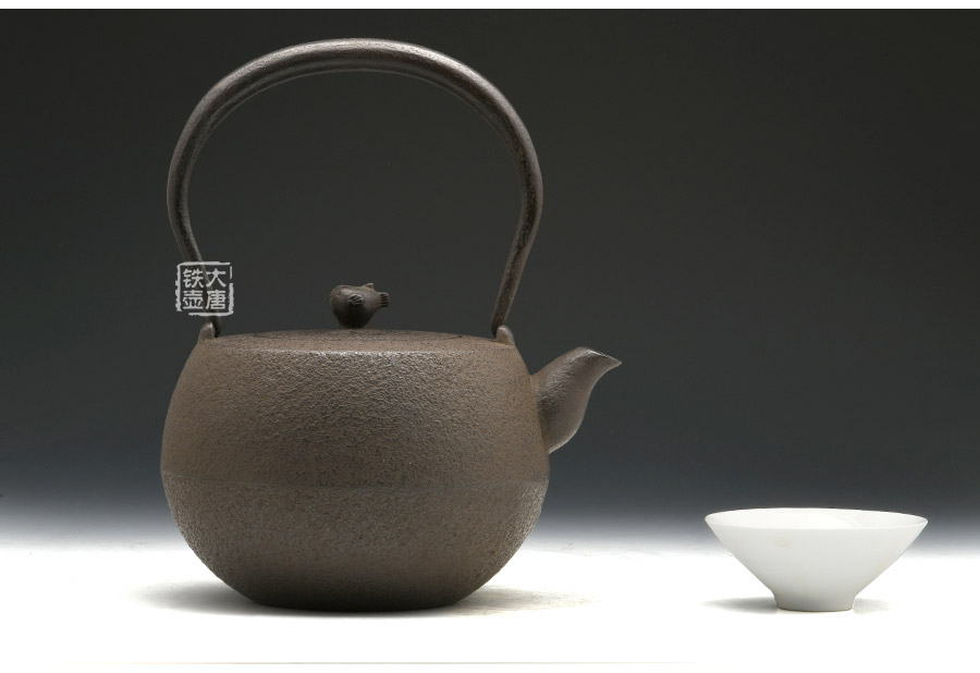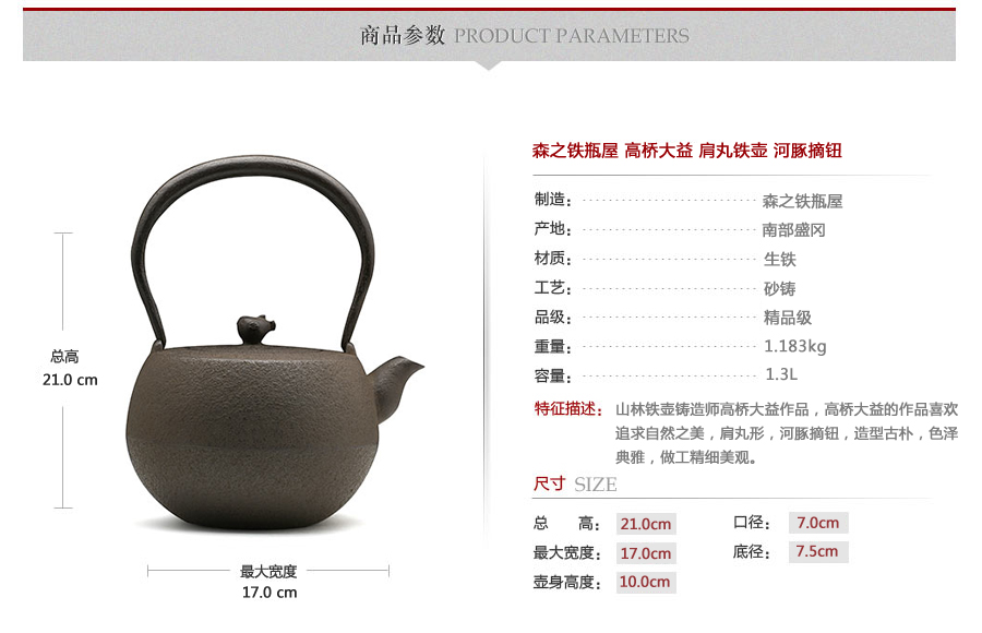 山林鐵壺鑄造師高橋大益作品,高橋大益的作品喜歡追求自然之美,肩丸形,河豚摘鈕,造型古樸,色澤典雅,做工精細美觀。
