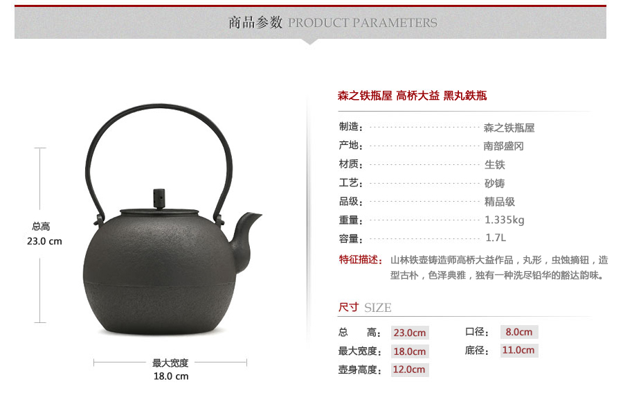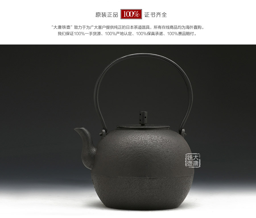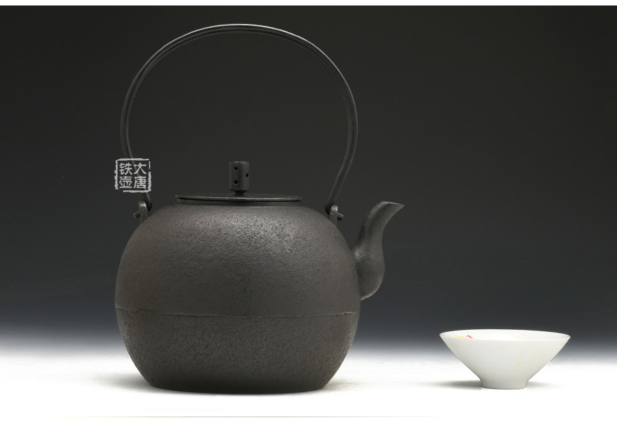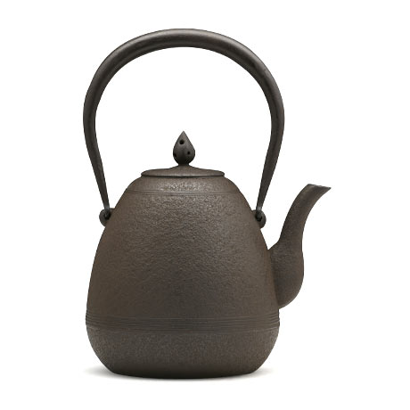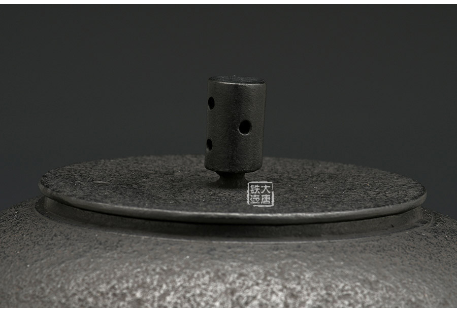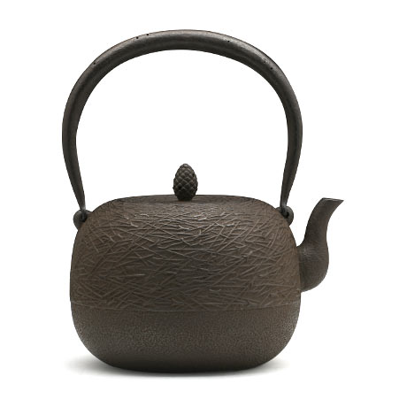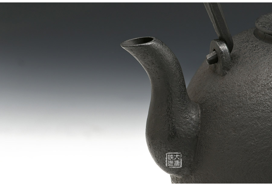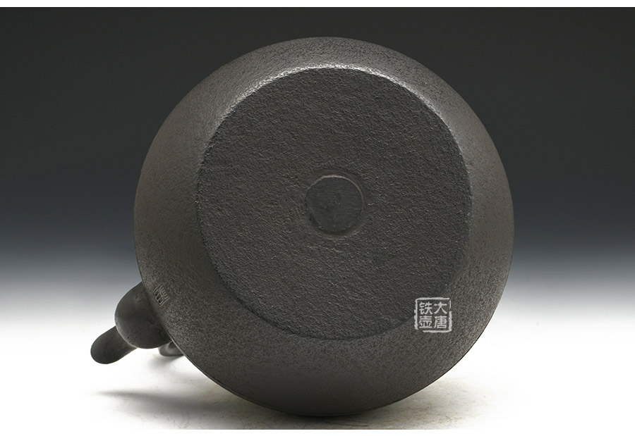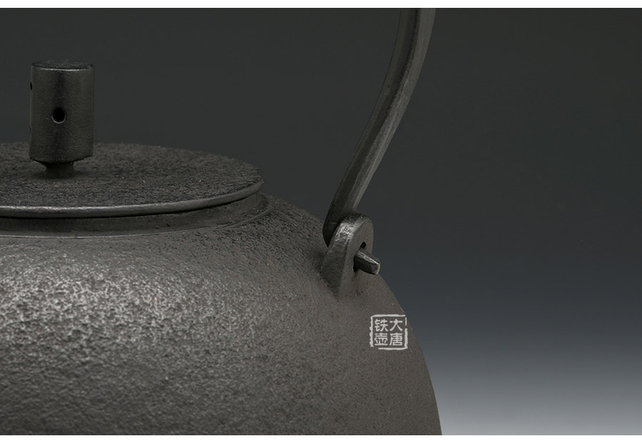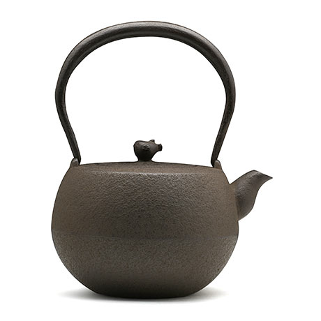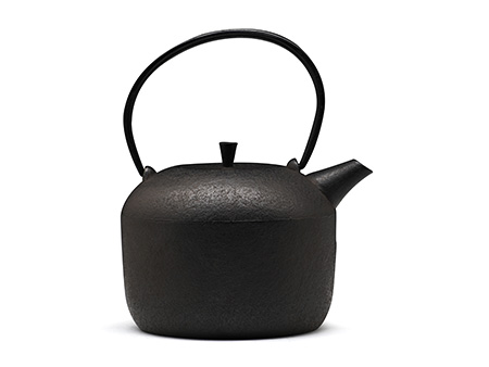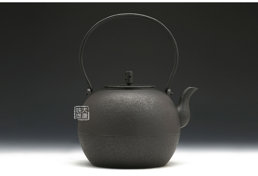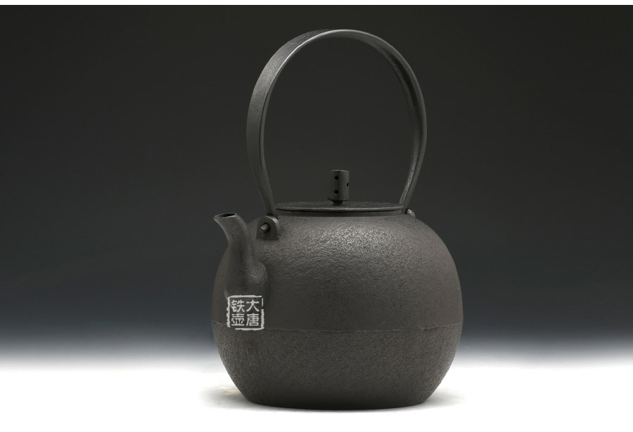 山林鐵壺鑄造師高橋大益作品,丸形,蟲蝕摘鈕,造型古樸,色澤典雅,獨有一種洗盡鉛華的豁達韻味。