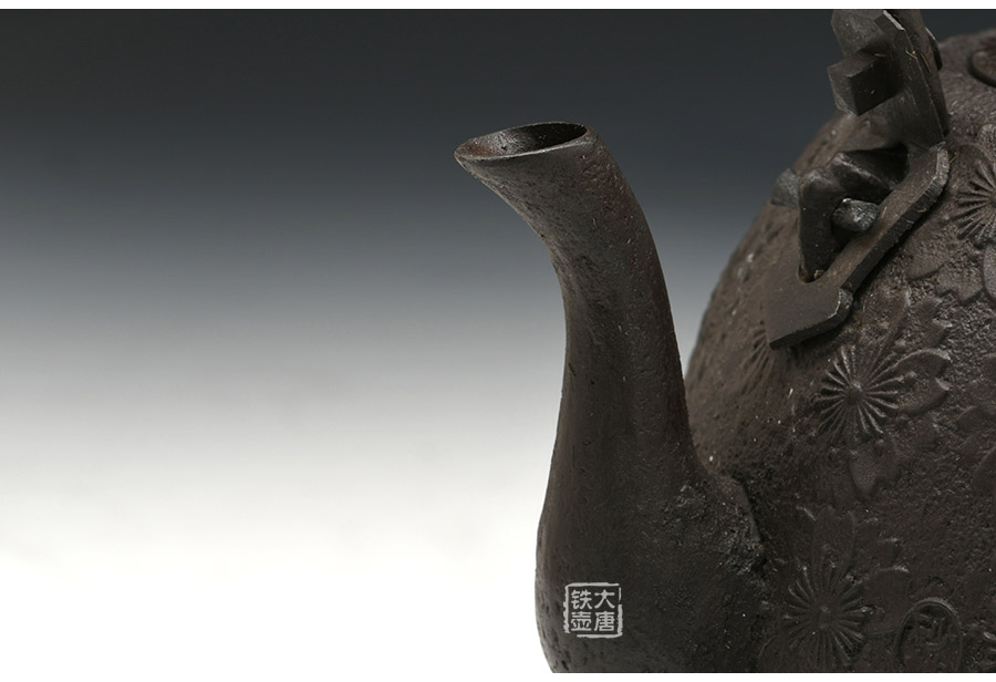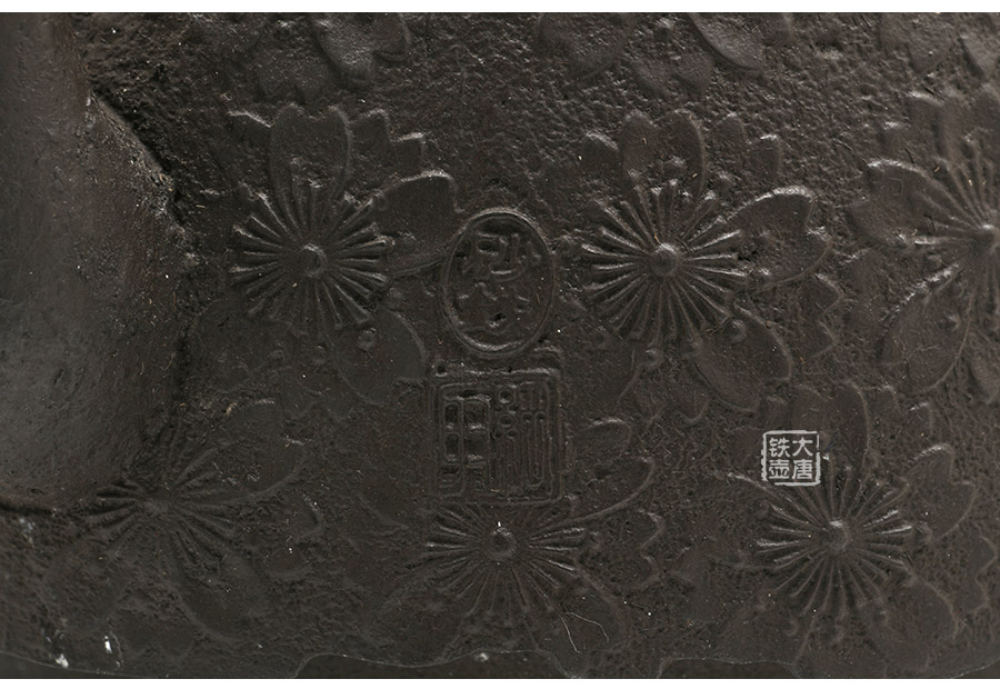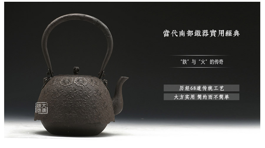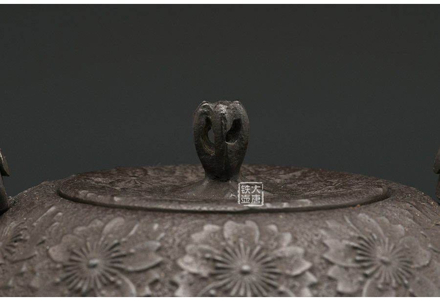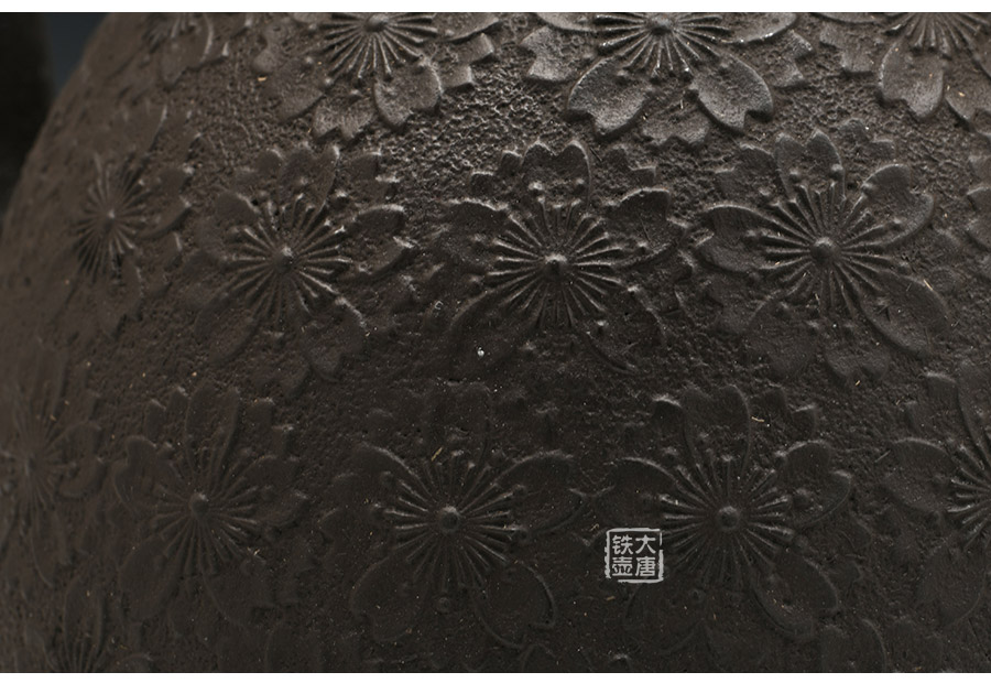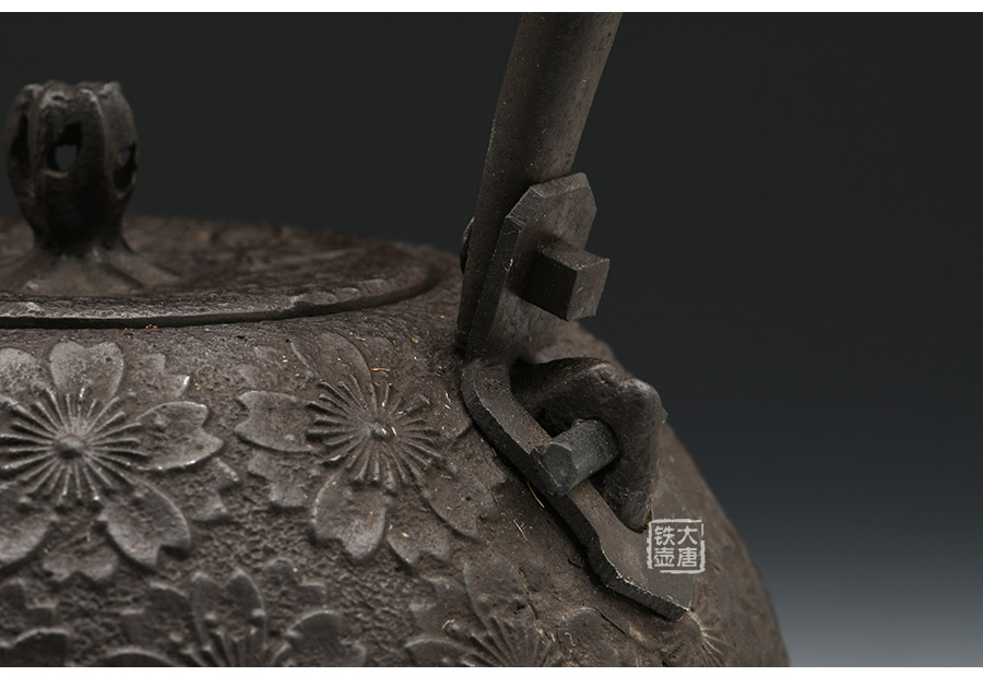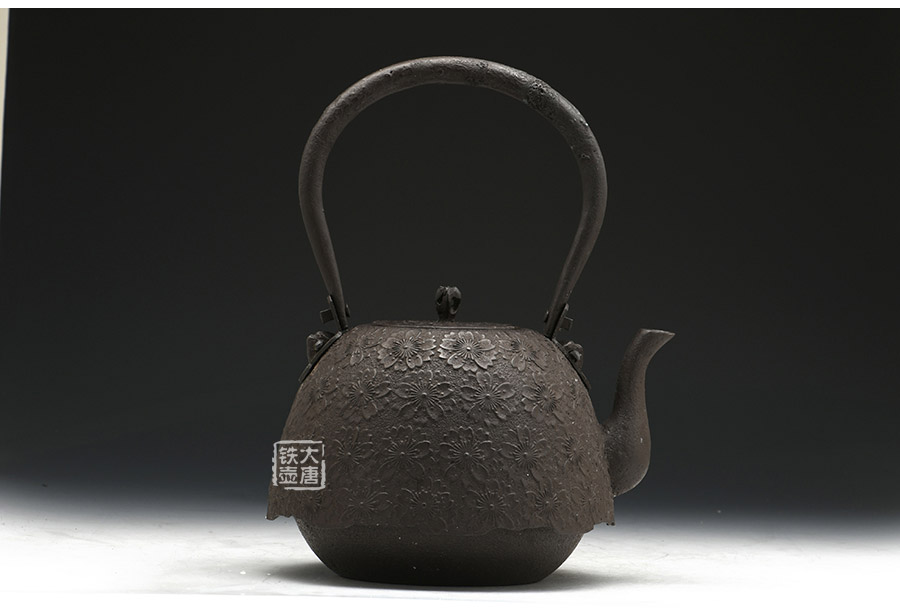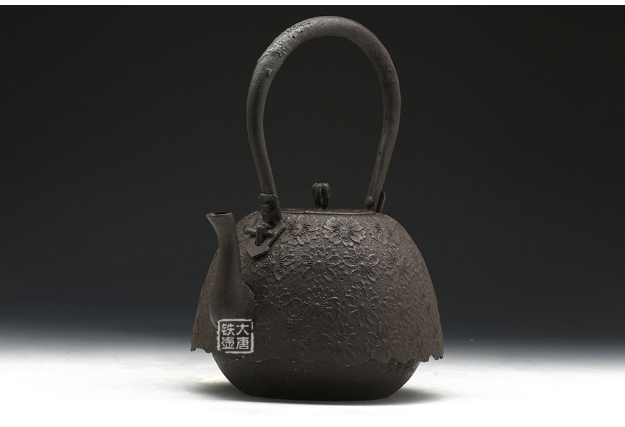 當代釜師名堂虎山工房手工精品,傳統(tǒng)砂鑄工藝,經(jīng)典南部形,櫻花紋飾,雕琢細膩精致,堪當?shù)洳卣淦贰?/p>
