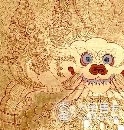 在繪制佛像服飾等位置時,用刻金技法,使圖案更具豐富的層次和立體感,用金勾勒的線條和圖案不但明亮度進一步提高,讓畫面更加燦爛,而且也使金在畫面上保持得更加長久。
