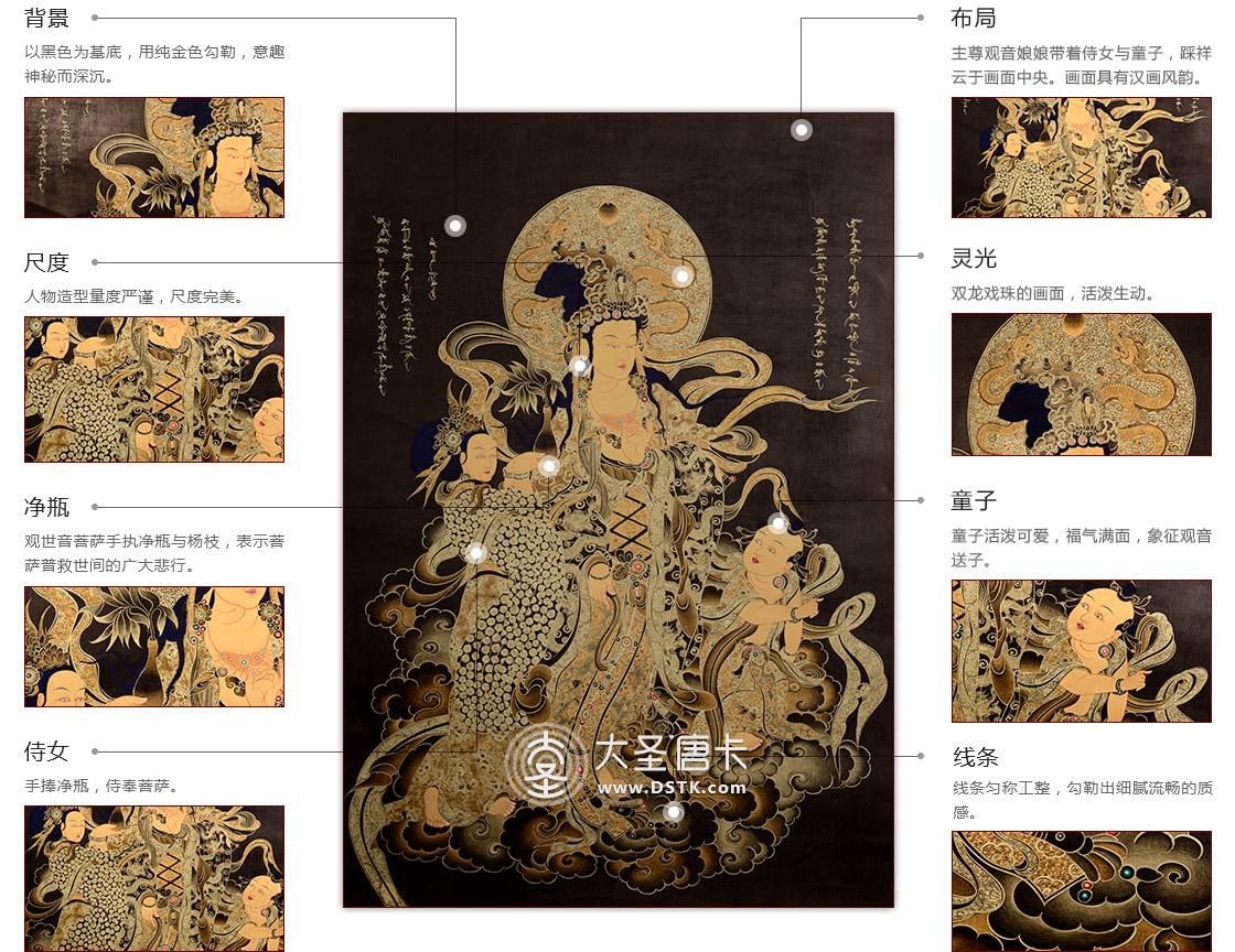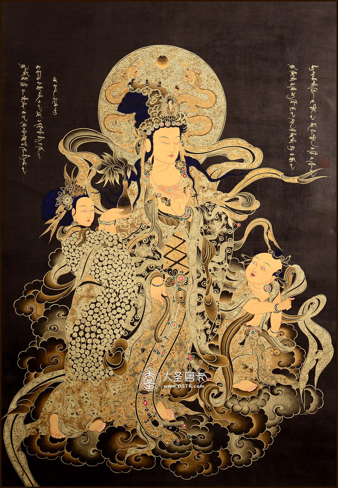 產地:熱貢 工藝:黑金 創作年份:2015 題材:送子觀音 繪制時間:24月 尺寸:*68*97cm 裝裱:無裱 材質: 使用場地: