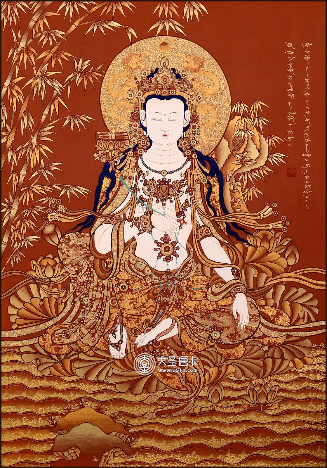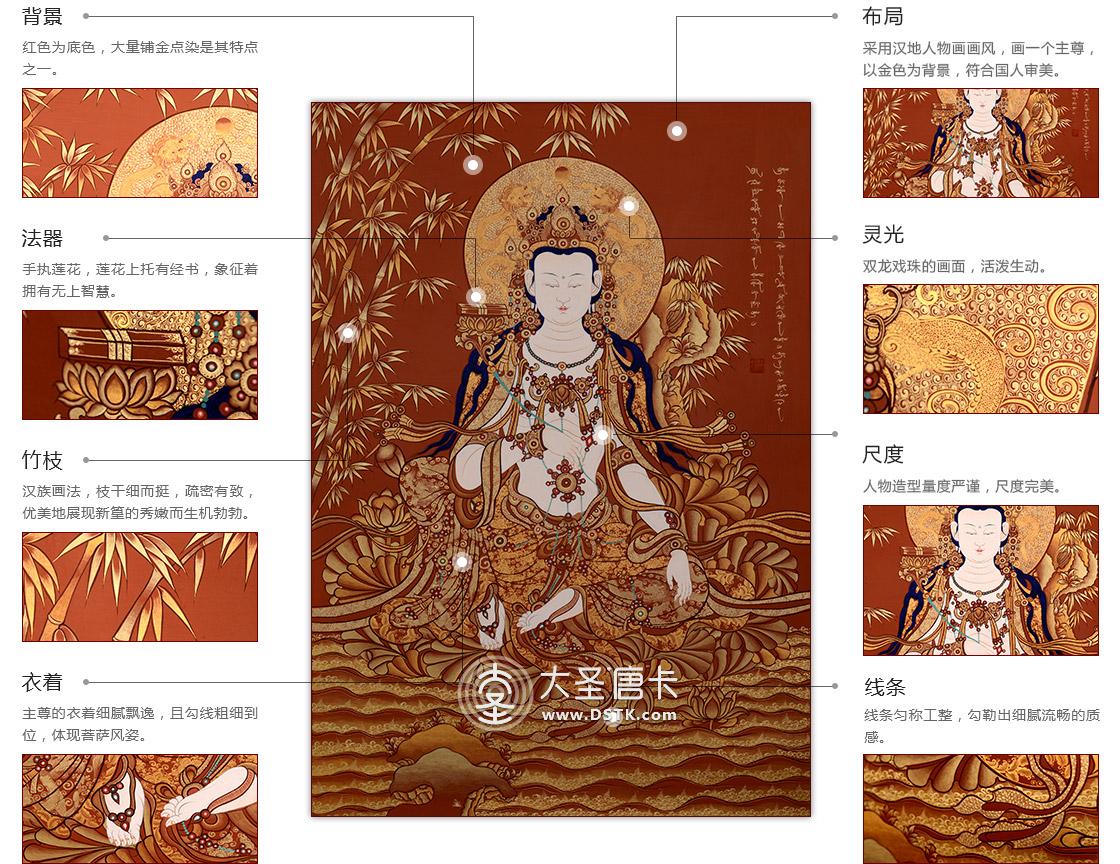 產地:熱貢 工藝:朱紅唐 創作年份:2016 題材:菩薩 繪制時間:24月 尺寸:*69*98cm 裝裱:無裱 材質: 使用場地:走廊