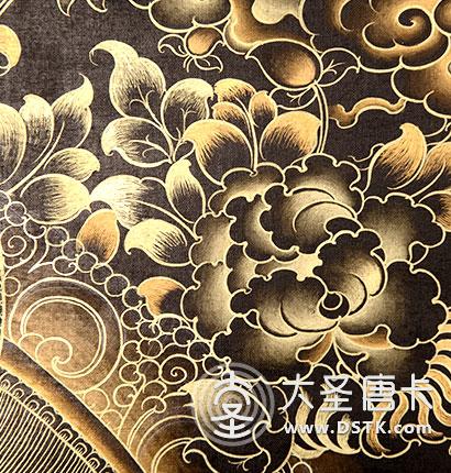 在繪制佛像服飾等位置時,用刻金技法,使圖案更具豐富的層次和立體感,用金勾勒的線條和圖案不但明亮度進一步提高,讓畫面更加燦爛,而且也使金在畫面上保持得更加長久。