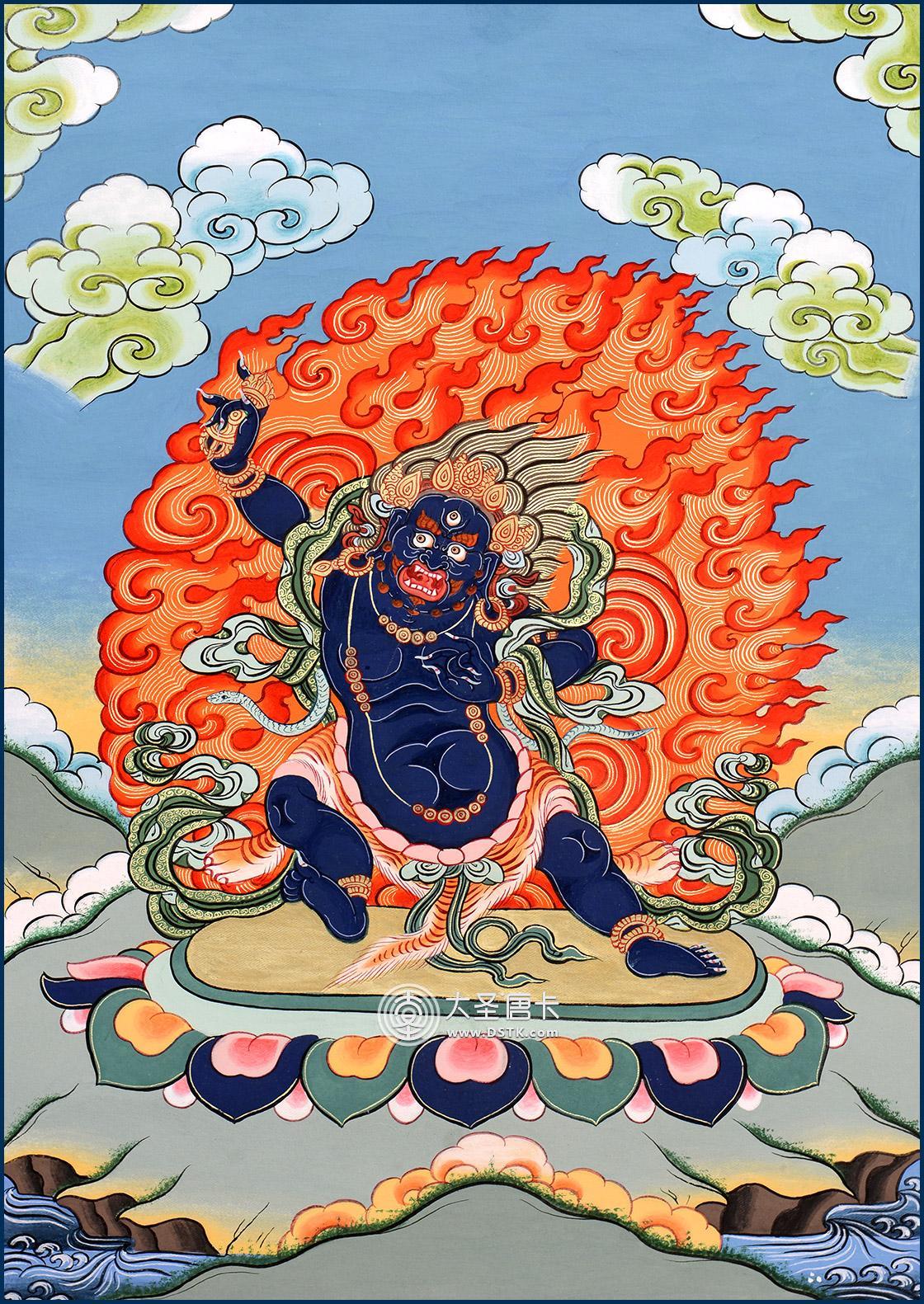 金剛手菩薩,梵文Vajrapani。因手執金剛杵,常侍衛于佛,故稱之為金剛手菩薩,具有除惡降魔的廣大神力。金剛手菩薩是菩薩部大勢至菩薩的忿怒像,在西藏地區,也是相當重要的雨神。與觀音菩薩、文殊菩薩合稱“三族姓尊”,分別代表“伏惡、慈悲、智慧”三種特質,也為“八大菩薩”之一。