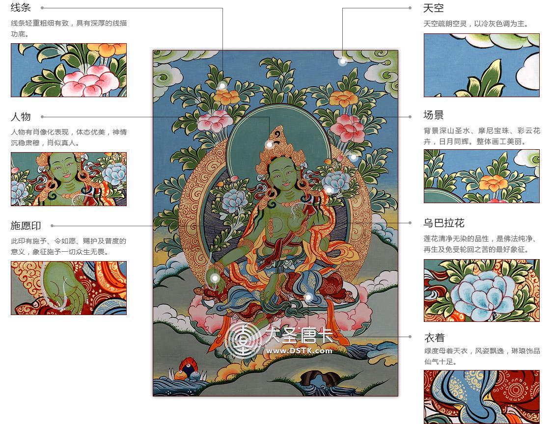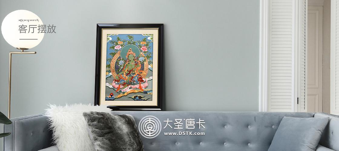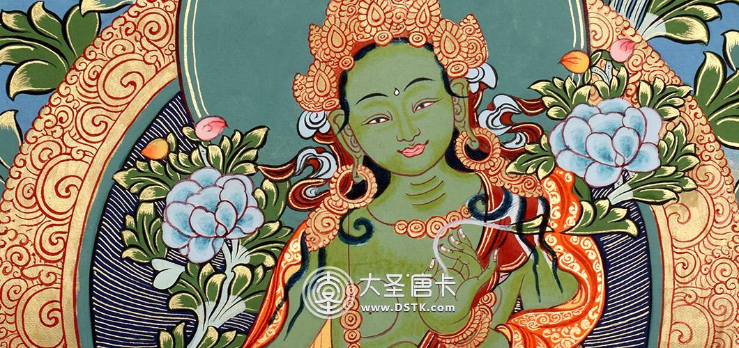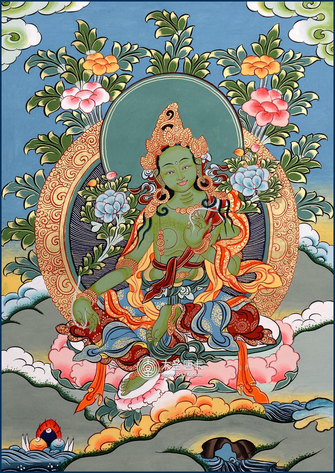 綠度母為觀世音菩薩的化身。度母,梵名Tara,全稱圣救度佛母,綠度母為所有度母之主尊,總攝其余二十尊化身之所有功德。她能救八種苦難,如獅難、象難、蛇難、水難、牢獄難、賊難、非人難,又稱為“救八難度母”。