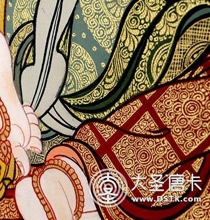 紋飾細節 紋飾栩栩如生,襯托主尊、配尊的法相威嚴,花卉紋飾靈巧飄逸,舒展有度,畫面統一和諧,渾然一體,增加了畫面的層次和高度。