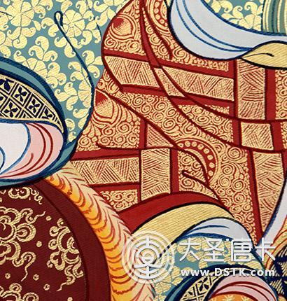 | 純天然礦植物顏料才能畫出的色彩和顆粒感,千年色彩不褪,永葆絢麗。 | 采用化學顏料或噴繪,色彩呆板不自然,容易出現褪色,影響美觀。 |