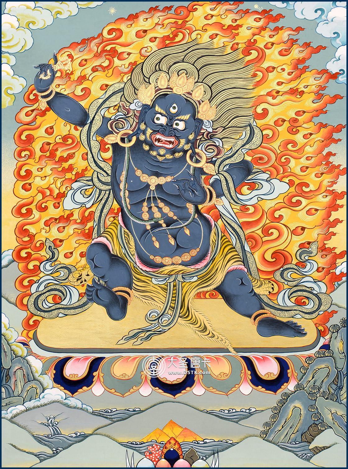 金剛手菩薩,梵文Vajrapani。因手執金剛杵,常侍衛于佛,故稱之為金剛手菩薩,具有除惡降魔的廣大神力。金剛手菩薩是菩薩部大勢至菩薩的忿怒像,在西藏地區,也是相當重要的雨神。與觀音菩薩、文殊菩薩合稱“三族姓尊”,分別代表“伏惡、慈悲、智慧”三種特質,也為“八大菩薩”之一。
