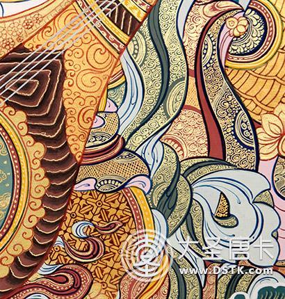 | 純天然礦植物顏料才能畫出的色彩和顆粒感,千年色彩不褪,永葆絢麗。 | 采用化學顏料或噴繪,色彩呆板不自然,容易出現褪色,影響美觀。 |