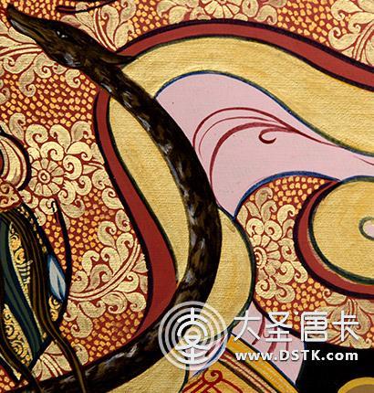 | 唐卡“師傅”開臉,筆路穩重流暢。體現完美天人相,可見佛菩薩慈眉善目,賦予唐卡畫像生的靈氣。 | 細節決定品質,點睛之筆不到位影響整體美觀,五官比例不協調,面目呆板,缺乏靈氣。 |