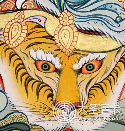 | 唐卡“師傅”開臉,筆路穩重流暢。體現完美天人相,可見佛菩薩慈眉善目,賦予唐卡畫像生的靈氣。 | 細節決定品質,點睛之筆不到位影響整體美觀,五官比例不協調,面目呆板,缺乏靈氣。 |