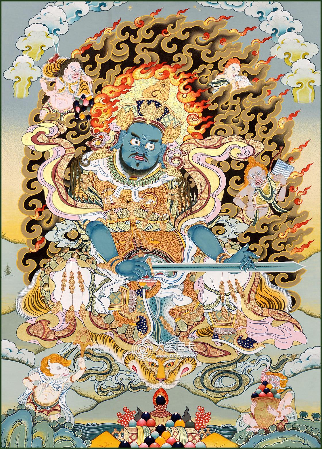 產地:熱貢 工藝:彩唐 創作年份:2016 題材:護法 繪制時間:6月 尺寸:*47*65cm 裝裱:無裱 材質: 使用場地:走廊