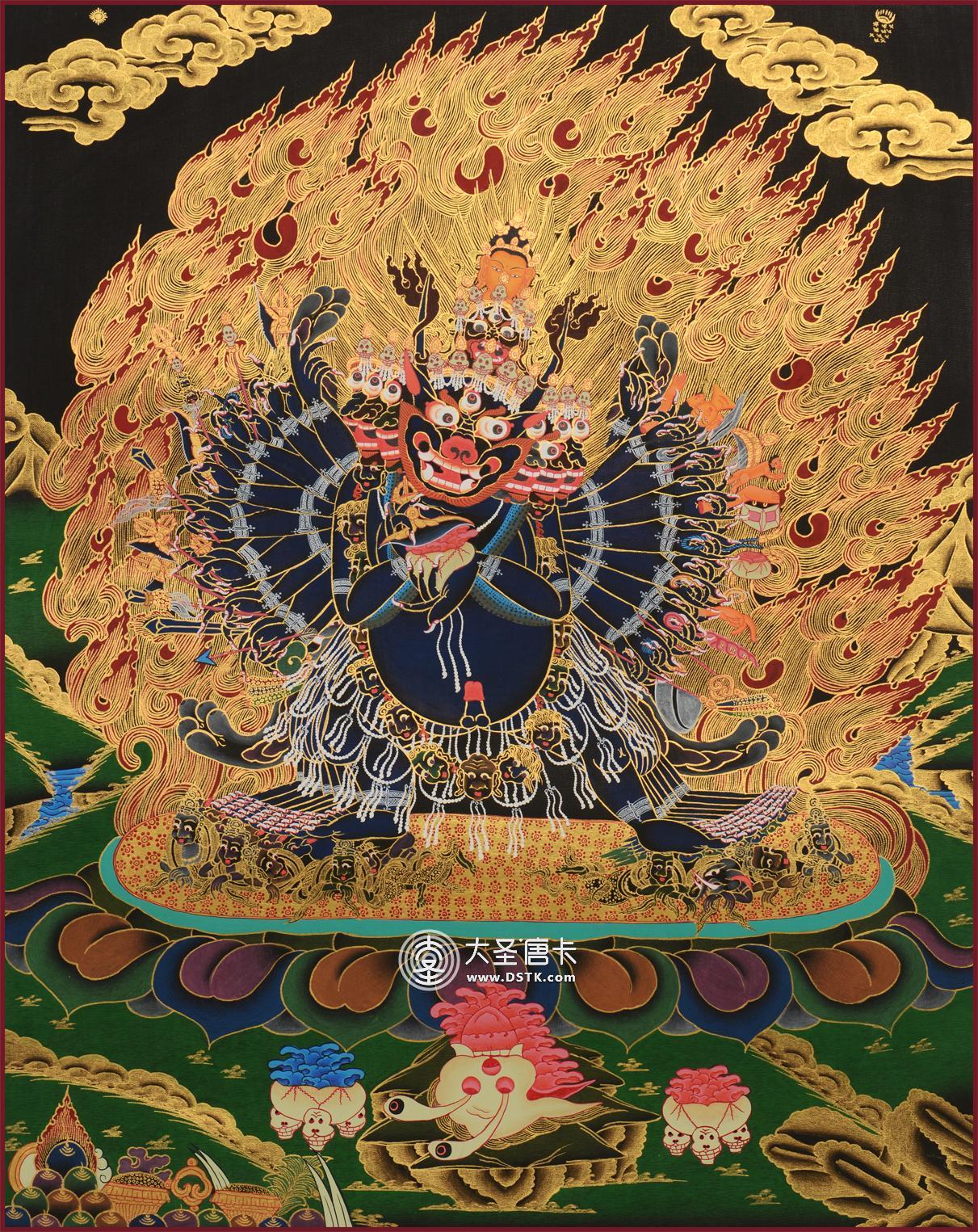 大威德金剛,大威德金剛是格魯派密宗所修本尊之一,因其能降服惡魔,故稱大威,又有護善之功,故又稱大德。梵名“閻魔德迦”(英語:Yamāntaka),藏語為”多吉久謝”, 日本東密稱為“大威德明王”。也叫閻曼德迦、怖畏金剛、牛頭明王。