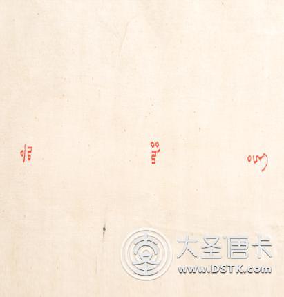 唐卡畫完后開光時,高僧大德一般在唐卡背面佛像,口意種子字"嗡阿吽",以顯現其加持之力。"嗡阿吽"三種子字是三世諸佛的心髓,也是一切佛菩薩身語意的根本種子字。