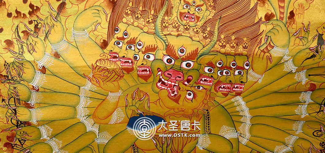 大威德金剛,大威德金剛是格魯派密宗所修本尊之一,因其能降服惡魔,故稱大威,又有護善之功,故又稱大德。梵名“閻魔德迦”(英語:Yamāntaka),藏語為”多吉久謝”, 日本東密稱為“大威德明王”。也叫閻曼德迦、怖畏金剛、牛頭明王。