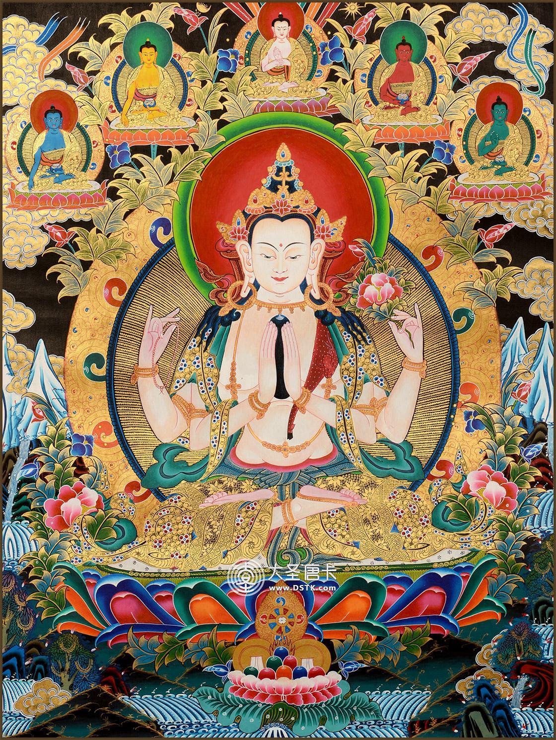 四臂觀音是雪域西藏的守護神,藏人由老至幼家家戶戶,皆吟誦其六字大明咒:“嗡嘛呢叭咪吽”。廣大藏蒙佛教徒還把達賴喇嘛奉為觀音化身, 四臂觀音輿文殊菩薩、金剛手菩薩,合稱三族姓尊。代表大悲、大智、大力,為密乘行者人人必修的法門。