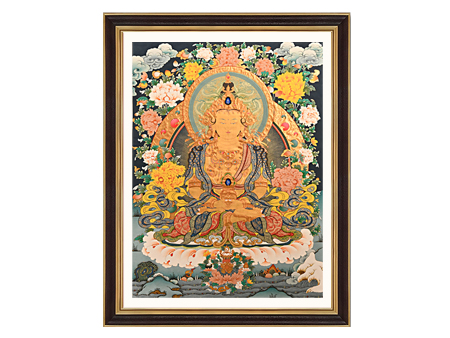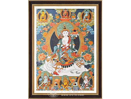 | 唐卡是歷史的瑰寶,現(xiàn)已被例入國(guó)家非物質(zhì)文化遺產(chǎn)名錄,得到了高度的重視和保護(hù)。同時(shí)由于顏料的珍稀、繪制周期長(zhǎng)、工藝復(fù)雜大大增強(qiáng)了其珍藏價(jià)值。一幅好的作品可遇不可求,近年來(lái)唐卡已成為收藏界炙手可熱的藏品。 | 唐卡的形式便于攜帶,其內(nèi)容體現(xiàn)了藏傳佛教的莊重、神圣、華貴,被稱為“移動(dòng)的佛像”。同時(shí)也是修行者積累善業(yè),追尋心靈的平靜與安寧的一個(gè)過(guò)程。 | 唐卡的內(nèi)容包羅萬(wàn)象,它以圖像的方式承載著藏族文化精髓,是藏族智慧的結(jié)晶,廣泛傳播了藏地的文化、歷史和宗教理論。 | 唐卡絢麗的色彩、流暢的線條、嚴(yán)謹(jǐn)?shù)慕Y(jié)構(gòu),都充滿著濃郁的高原和游牧民族風(fēng)情,無(wú)疑是難得的藝術(shù)珍品。值得一提的是唐卡繪制顏料全部為天然礦物顏料,畫(huà)面效果艷麗,可以保存千年而不變色。 |
