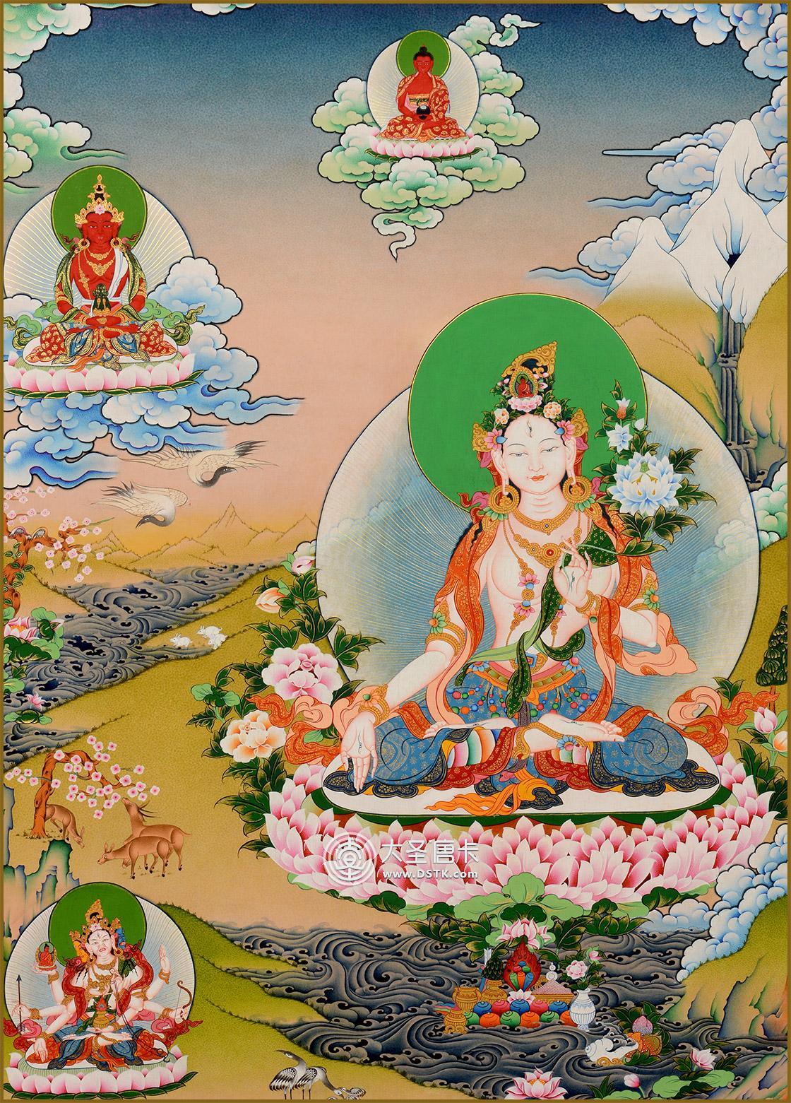 白度母(White Tara),藏音譯卓瑪嘎爾姆,又稱為增壽救度佛母,是觀世音菩薩的化身。白度母具有救度八難的威德。白度母是能夠為一切眾生賜予長壽的一尊度母。在藏傳佛教中,長壽佛、尊勝佛母、白度母被認為是福壽吉祥的象征,稱為“長壽三尊”。