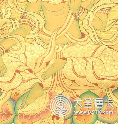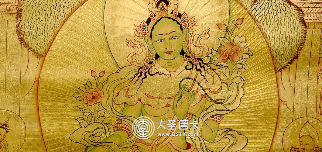 綠度母為觀世音菩薩的化身。度母,梵名Tara,全稱圣救度佛母,綠度母為所有度母之主尊,總攝其余二十尊化身之所有功德。她能救八種苦難,如獅難、象難、蛇難、水難、牢獄難、賊難、非人難,又稱為“救八難度母”。
