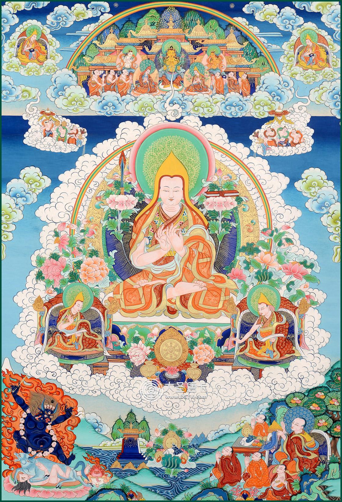 人間的供養者或手捧貢物,或雙手合十,虔誠供養宗喀巴大師。