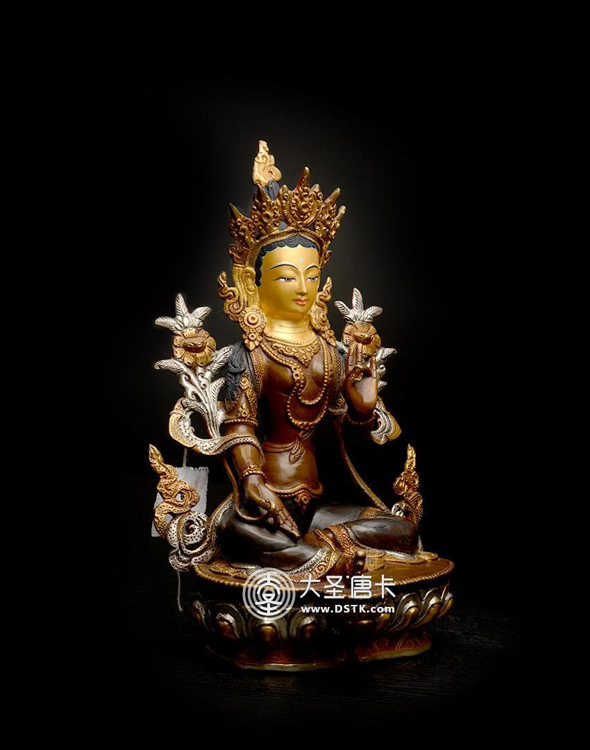 產地:尼泊爾佛像 工藝:純手工 創作年份:2017 題材:佛母 繪制時間:1日 尺寸:*22*33cm 重量:0 g 材質:紫銅 使用場地:書房