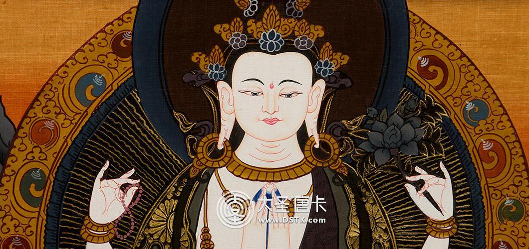 四臂觀音是雪域西藏的守護神,藏人由老至幼家家戶戶,皆吟誦其六字大明咒:“嗡嘛呢叭咪吽”。廣大藏蒙佛教徒還把達賴喇嘛奉為觀音化身, 四臂觀音輿文殊菩薩、金剛手菩薩,合稱三族姓尊。代表大悲、大智、大力,為密乘行者人人必修的法門。