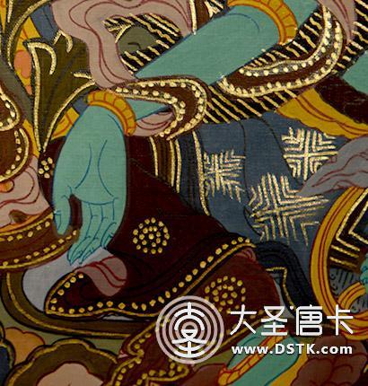 主尊法相慈悲,花卉紋飾靈巧飄逸,舒展有度,畫面統一和諧,渾然一體,增加了畫面的層次和高度。