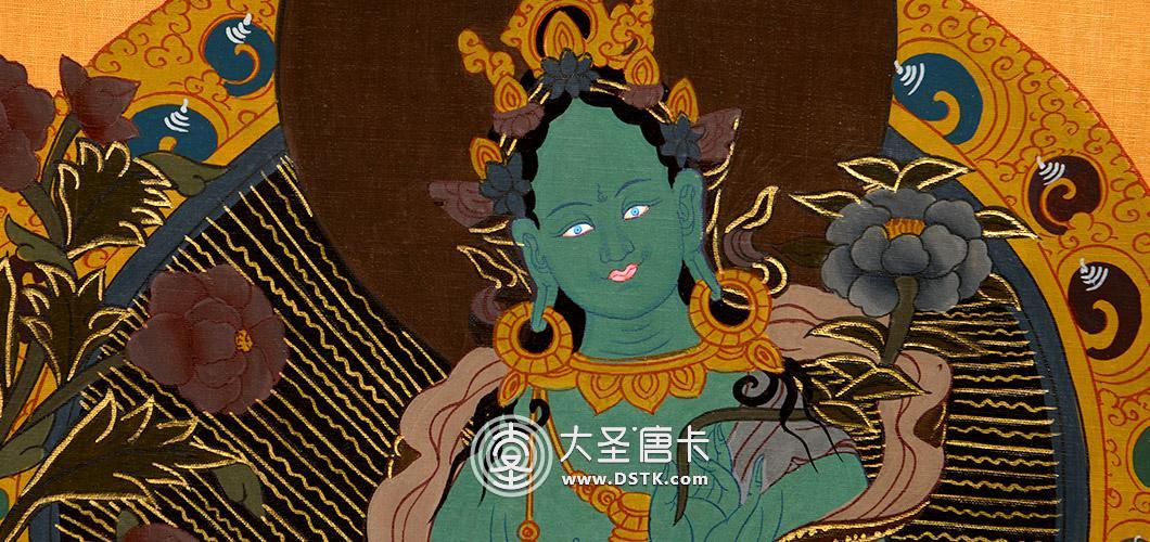 綠度母為觀世音菩薩的化身。度母,梵名Tara,全稱圣救度佛母,綠度母為所有度母之主尊,總攝其余二十尊化身之所有功德。她能救八種苦難,如獅難、象難、蛇難、水難、牢獄難、賊難、非人難,又稱為“救八難度母”。